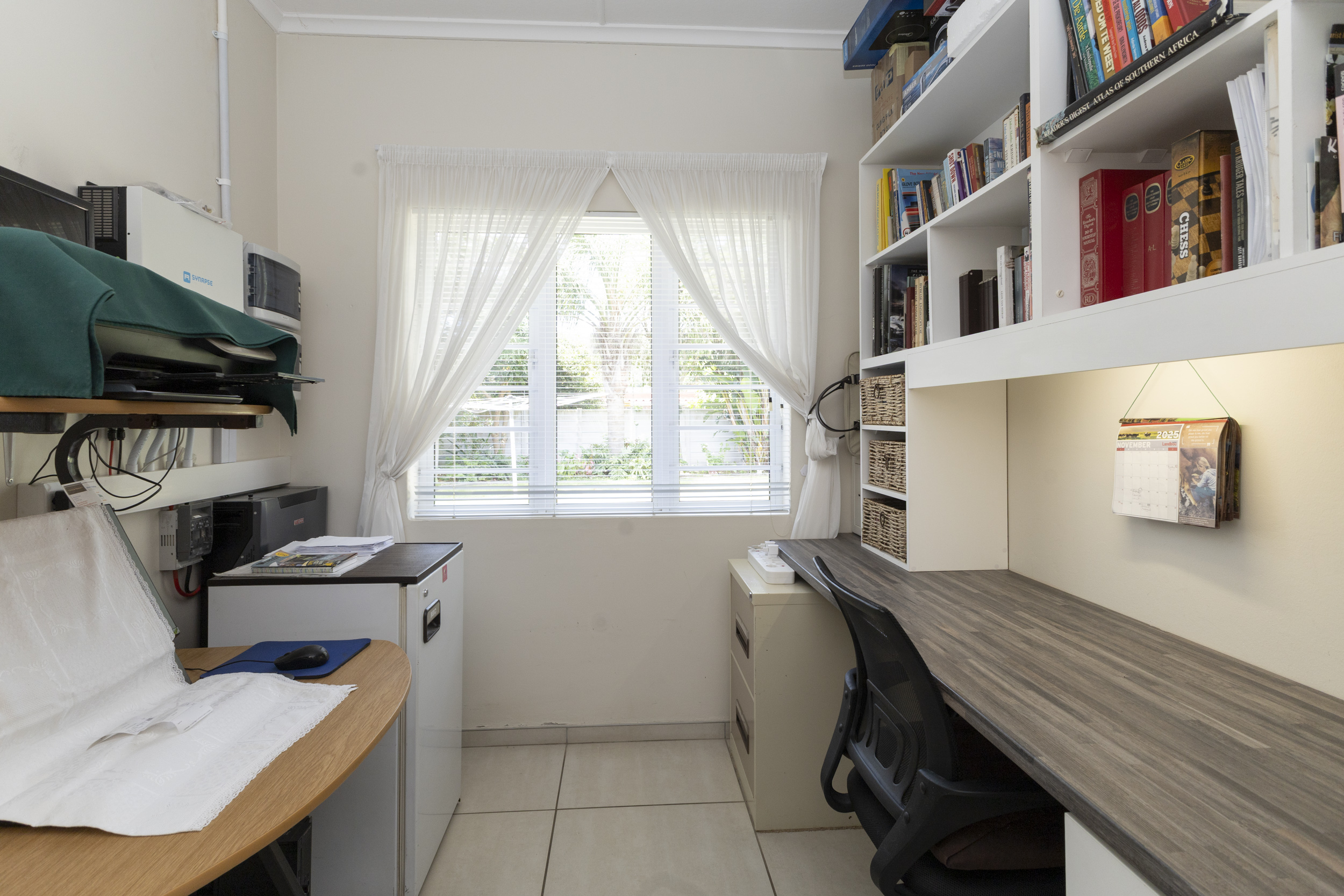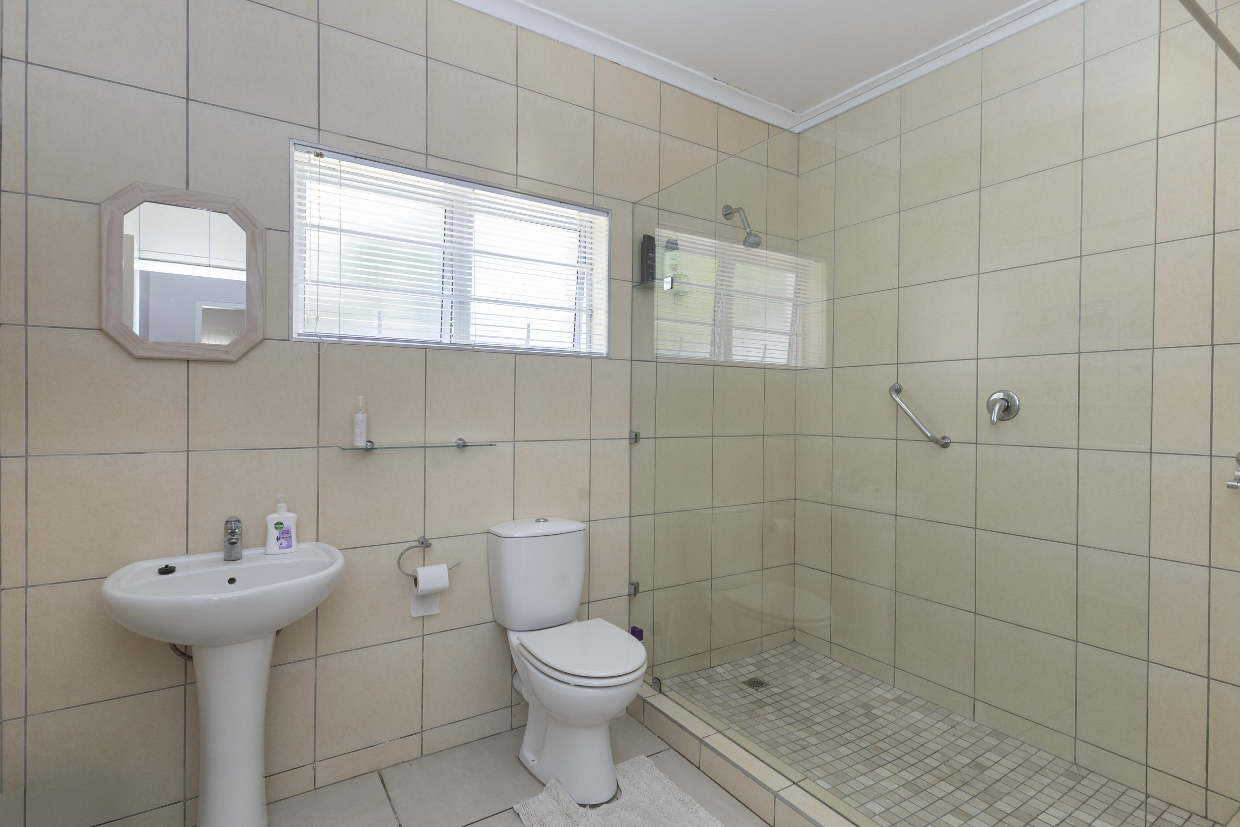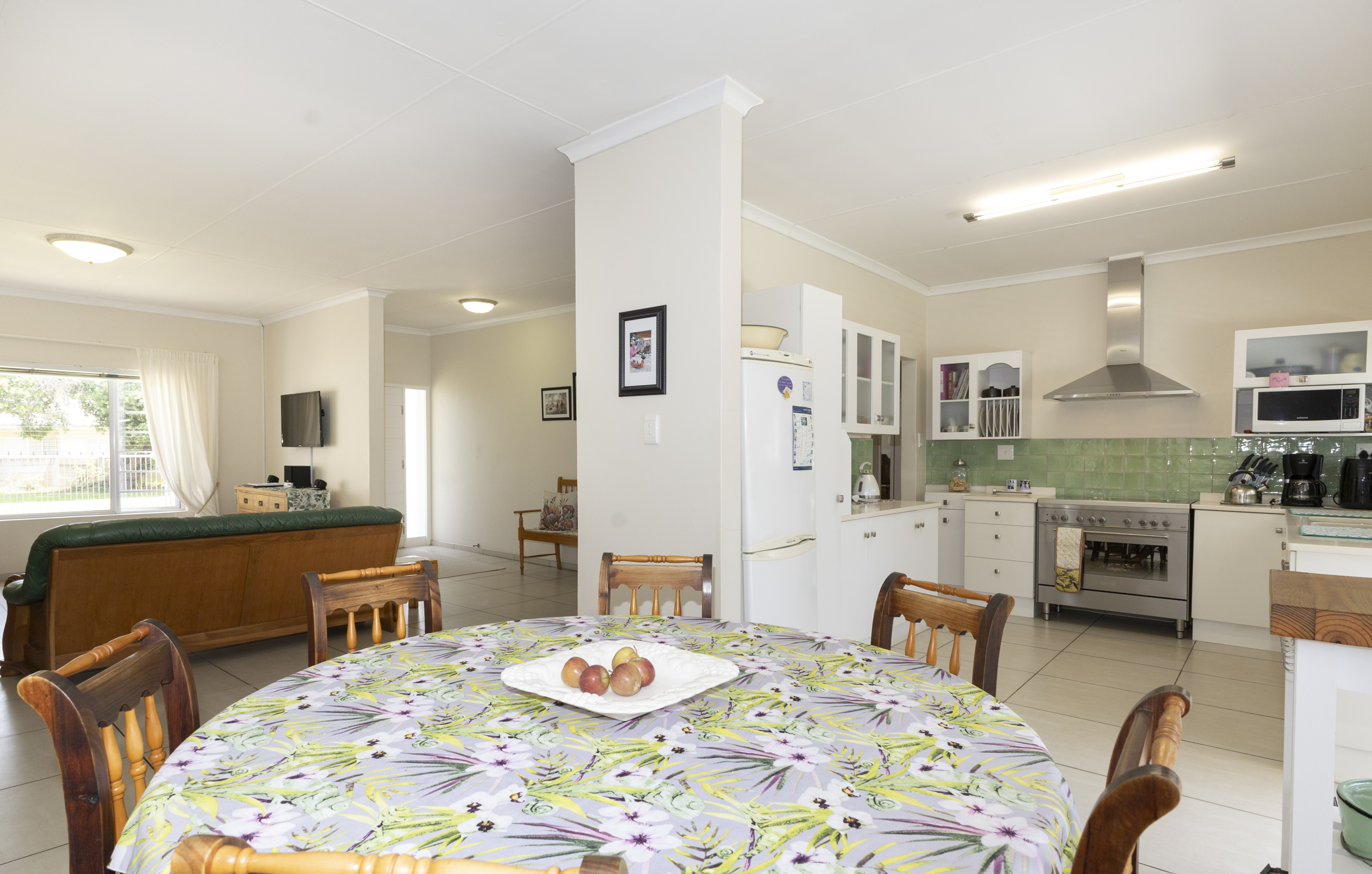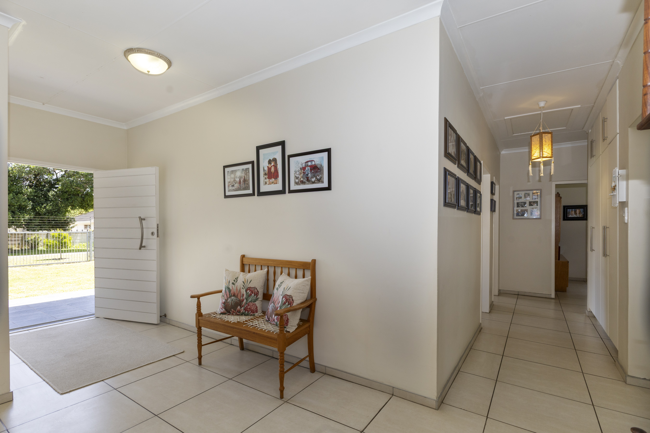 Step into inviting open plan living spaces where natural light filters through, creating a warm and uplifting ambience. The well appointed kitchen, complete with a free standing stove, forms the heart of the home. The design is practical, stylish, and designed for easy everyday living. The dining room flows gracefully onto an east facing patio that overlooks the manicured back garden, providing the perfect setting for morning coffee, relaxed outdoor dining, or simply unwinding in your private sanctuary. The spacious master bedroom offers an en-suite bathroom and direct access to the tandem double garage, ensuring comfort, convenience, and peace of mind when returning home. Two additional family bedrooms share a neat bathroom. One of these, features it's own hand basin and direct outdoor access which is ideal for guests, older children, or even a home office setup. This exceptional property comes equipped with solar panels, an inverter and batteries, a backup water supply, and a fitted alarm system, ensuring uninterrupted comfort and excellent security. The fully enclosed garden is accessed via an automated entrance gate, with palisade fencing allowing unobstructed views, while enhancing the property’s safety. Aluminium windows further contribute to the home’s low maintenance appeal.