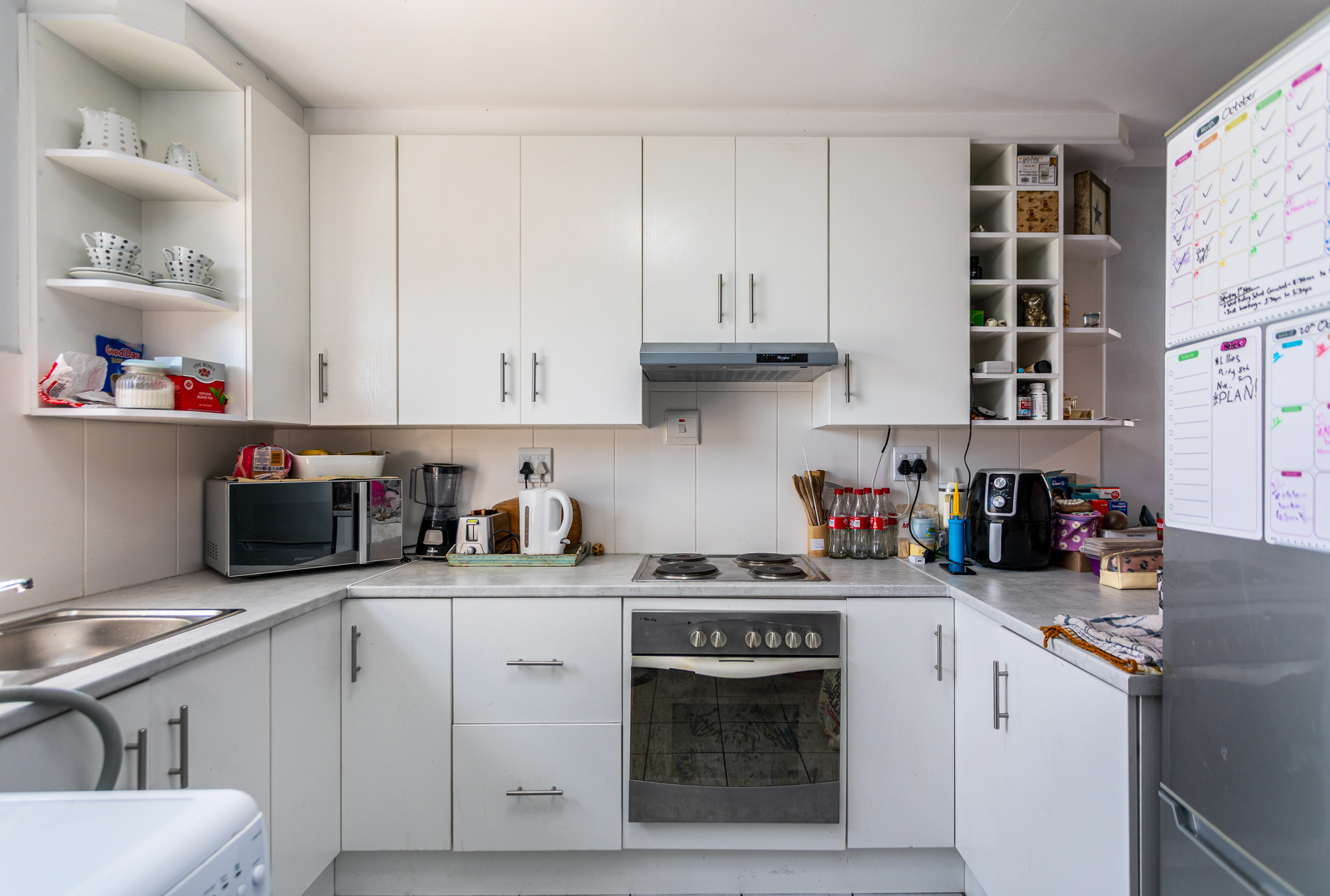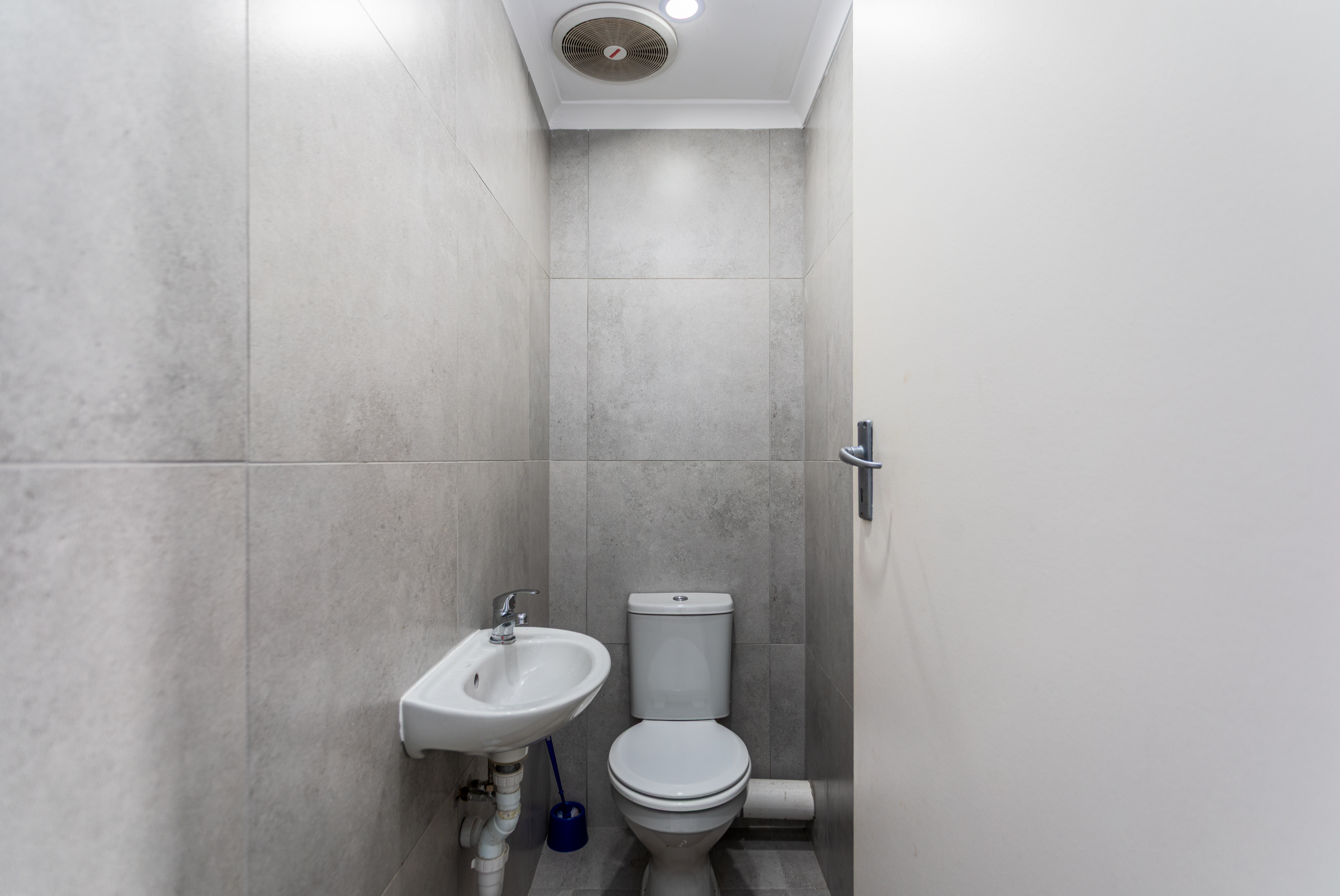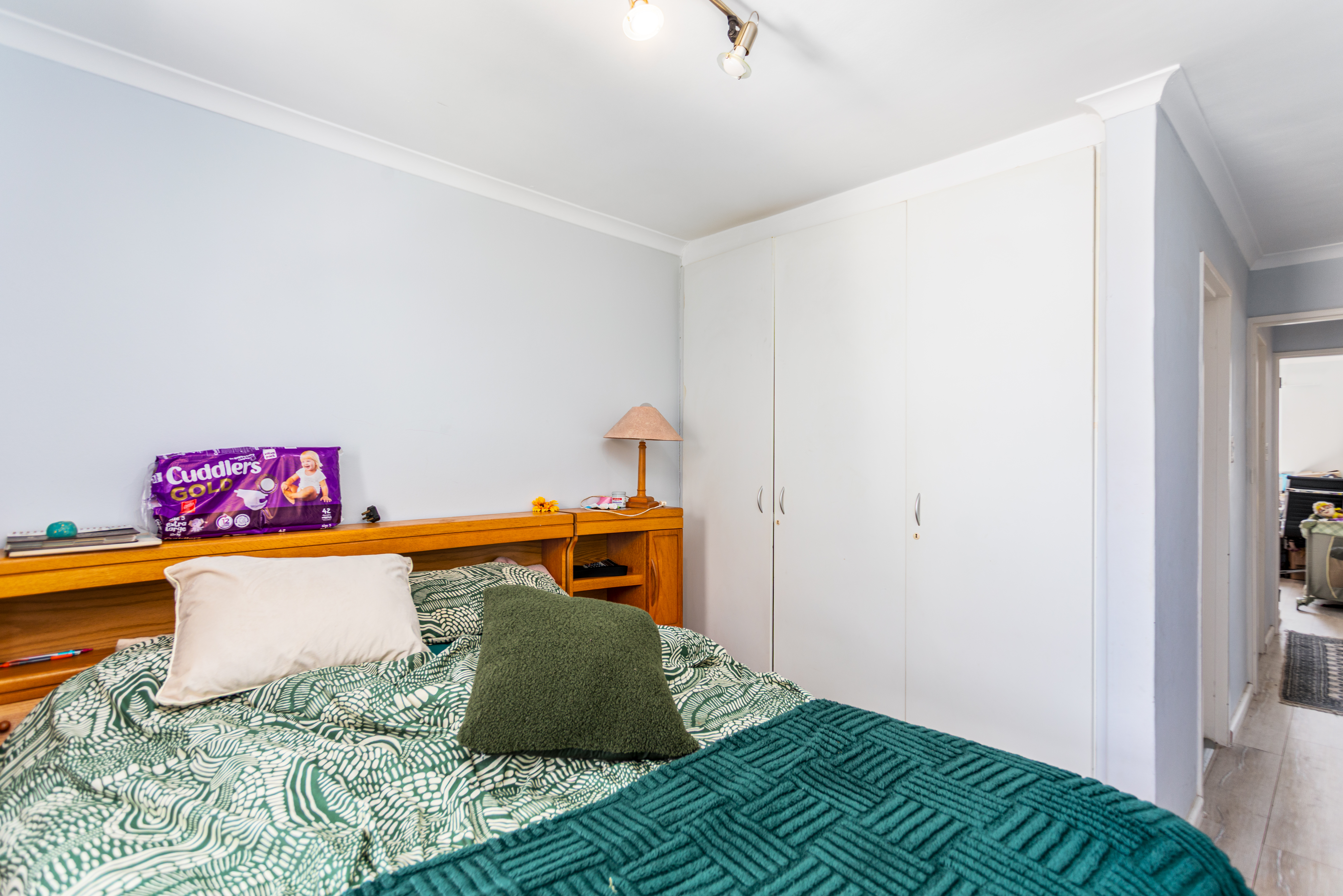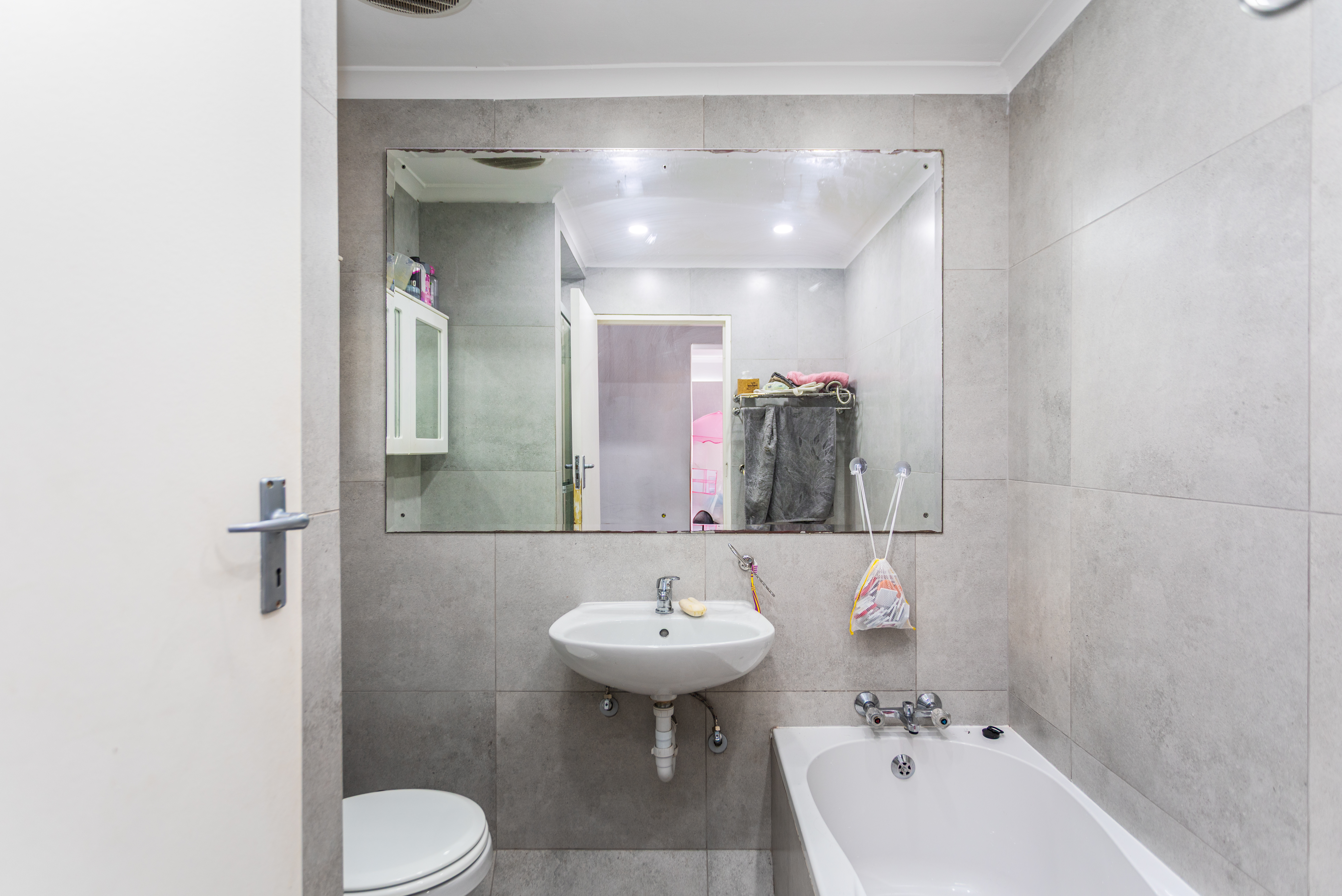 Both bedrooms are well-sized with built-in cupboards, while the full bathroom and guest toilet add everyday convenience. The unit also includes one secure parking bay within the complex.