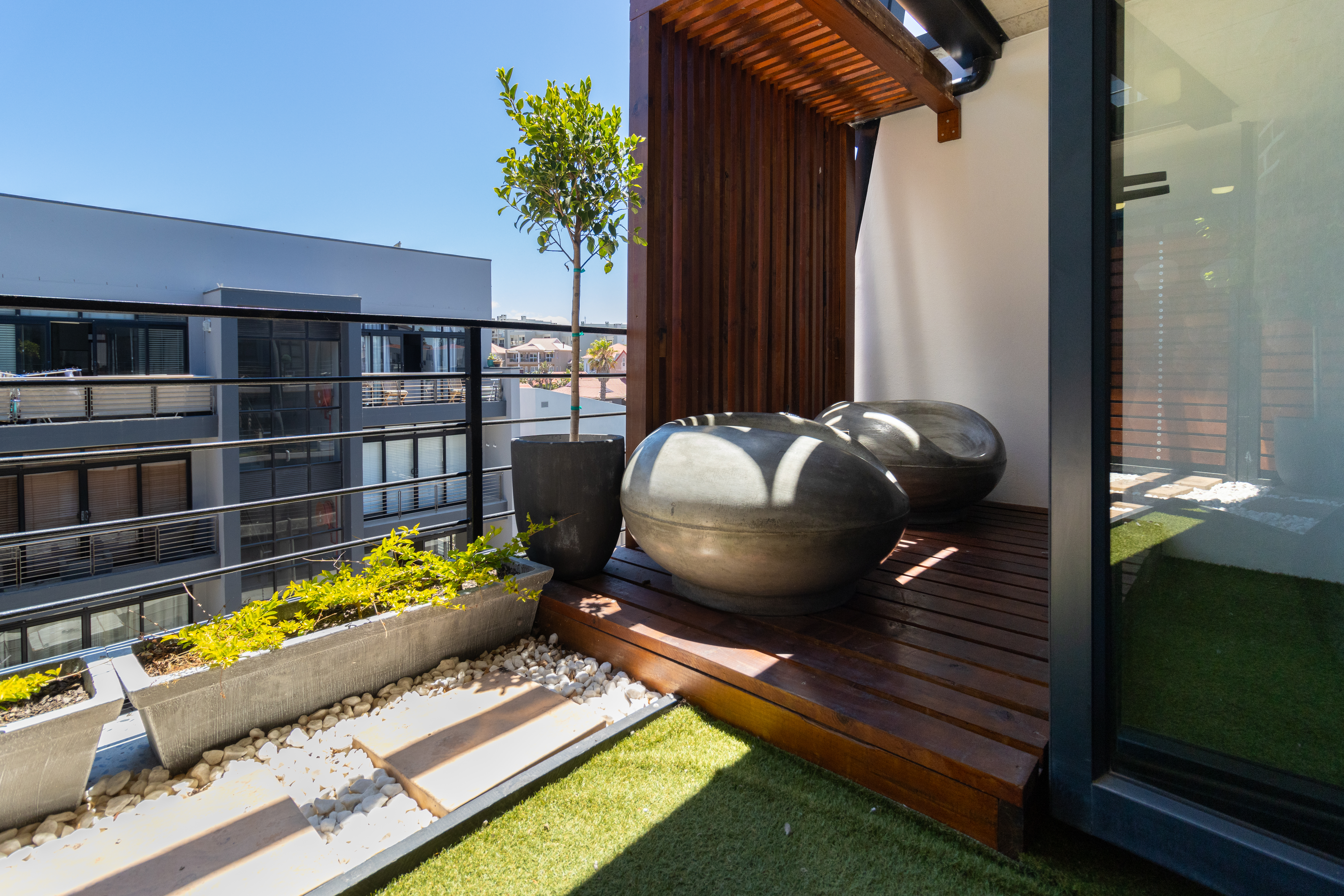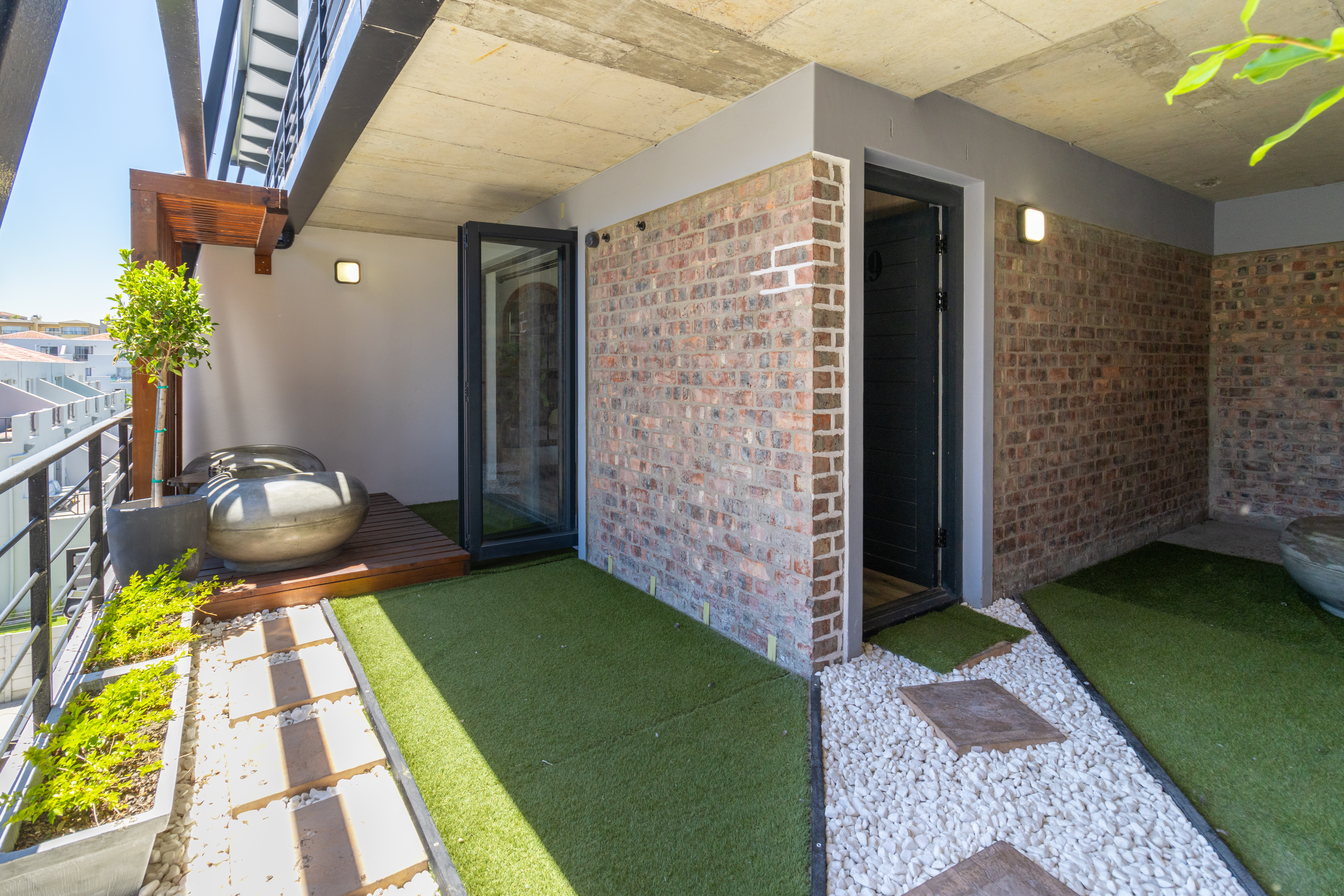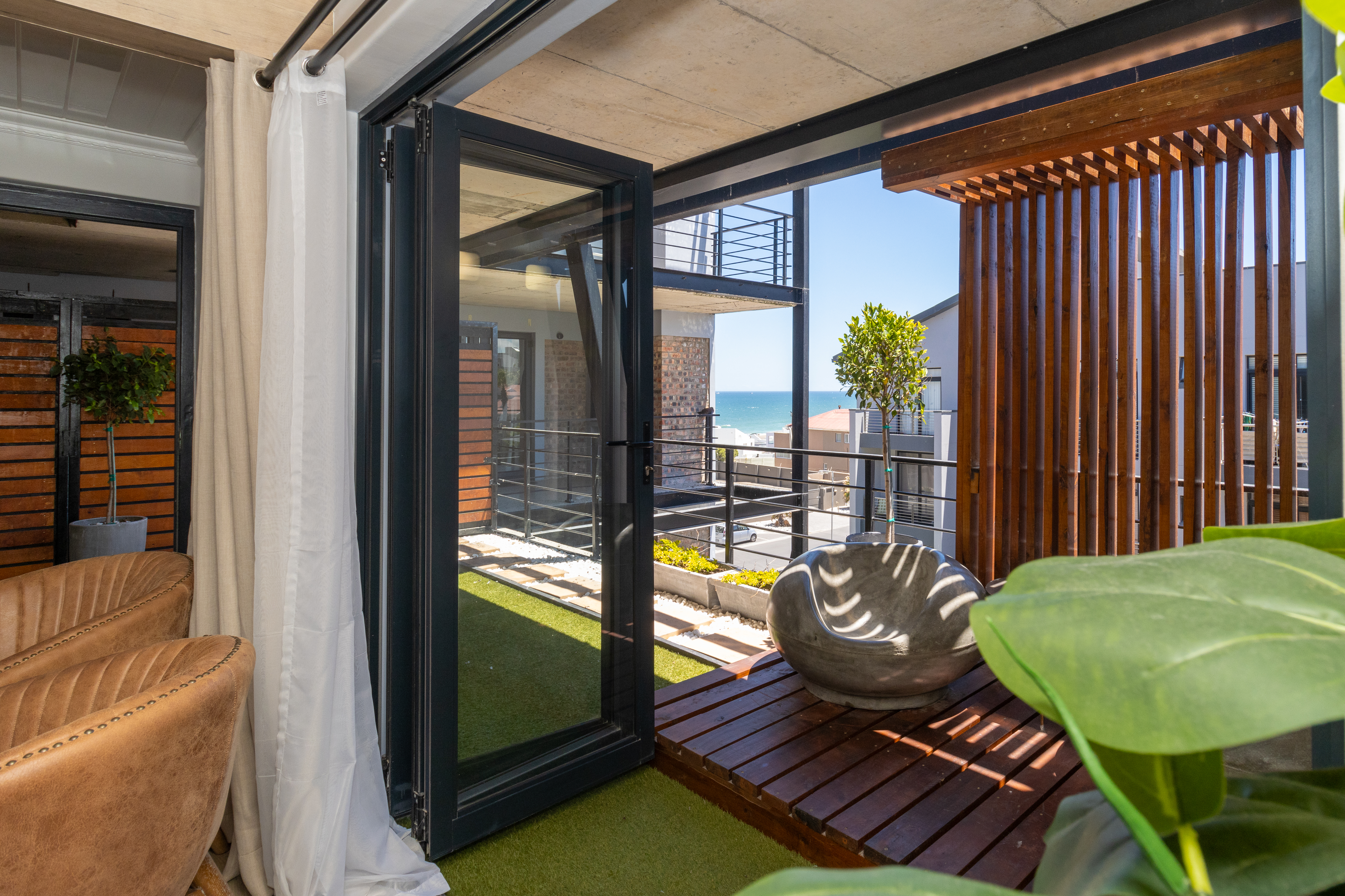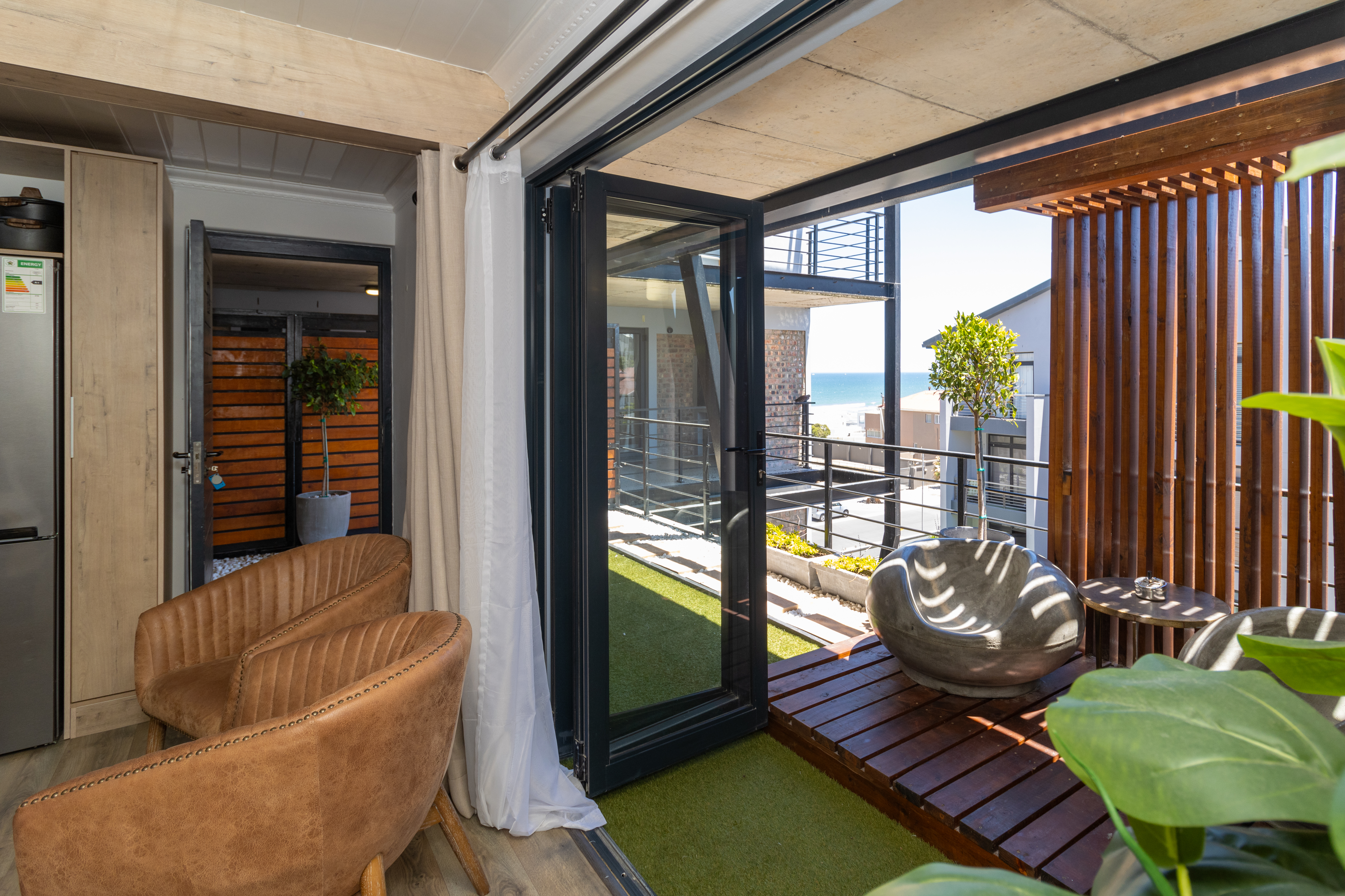 One of the standout features of this apartment is the private patio and balcony, which extends the living space outdoors. This tranquil area is ideal for morning coffee, evening sundowners, or simply enjoying the fresh coastal air and surrounding views.