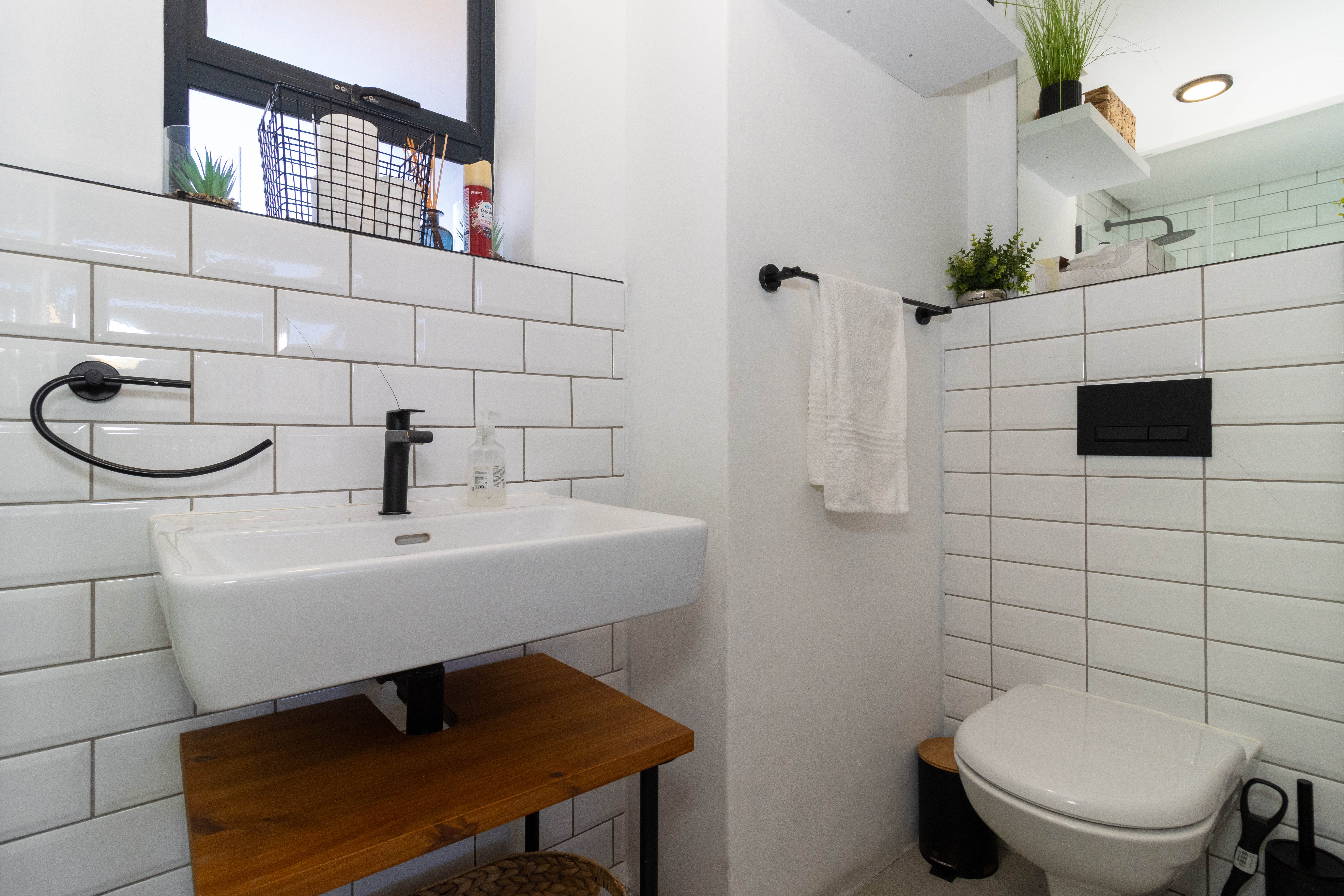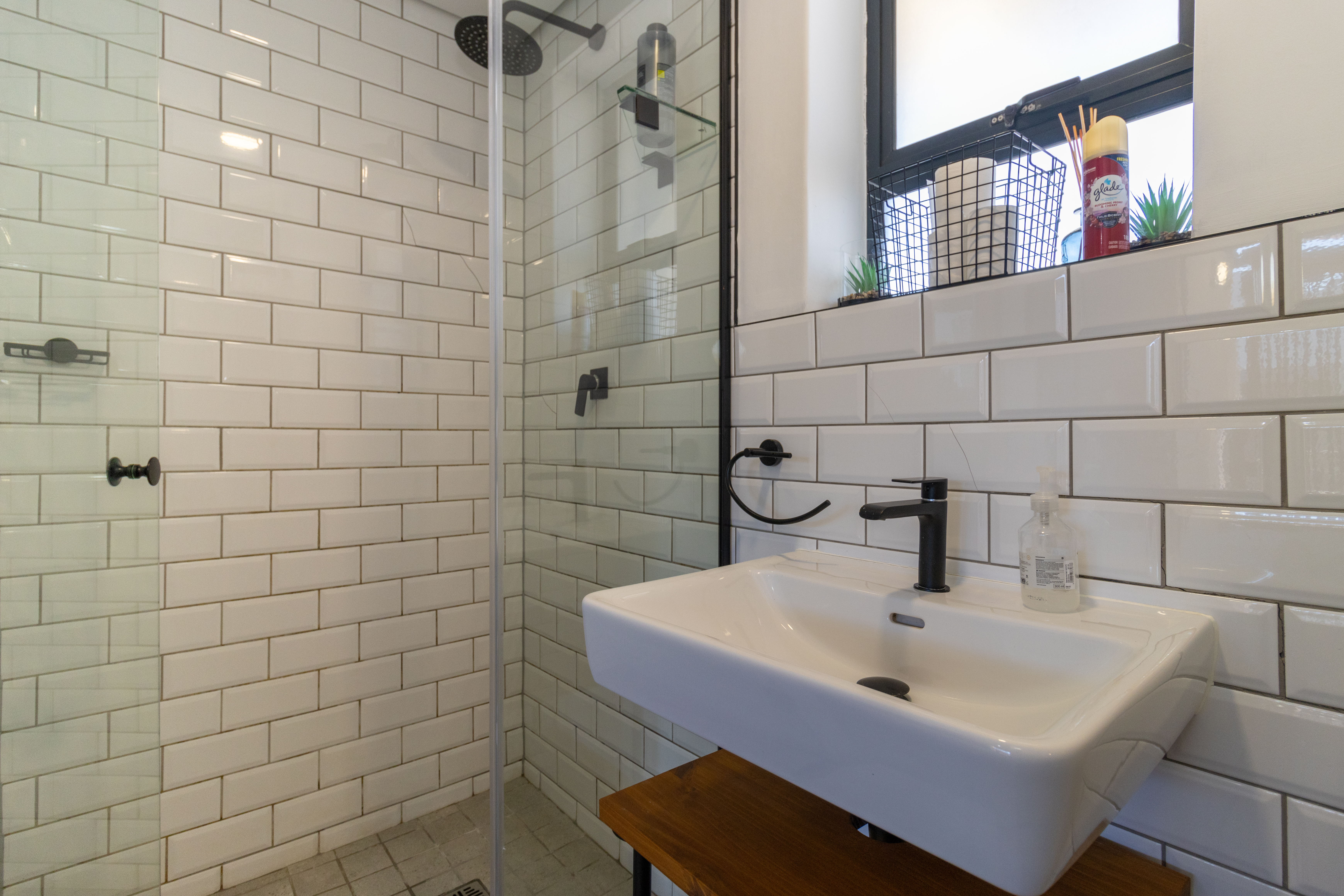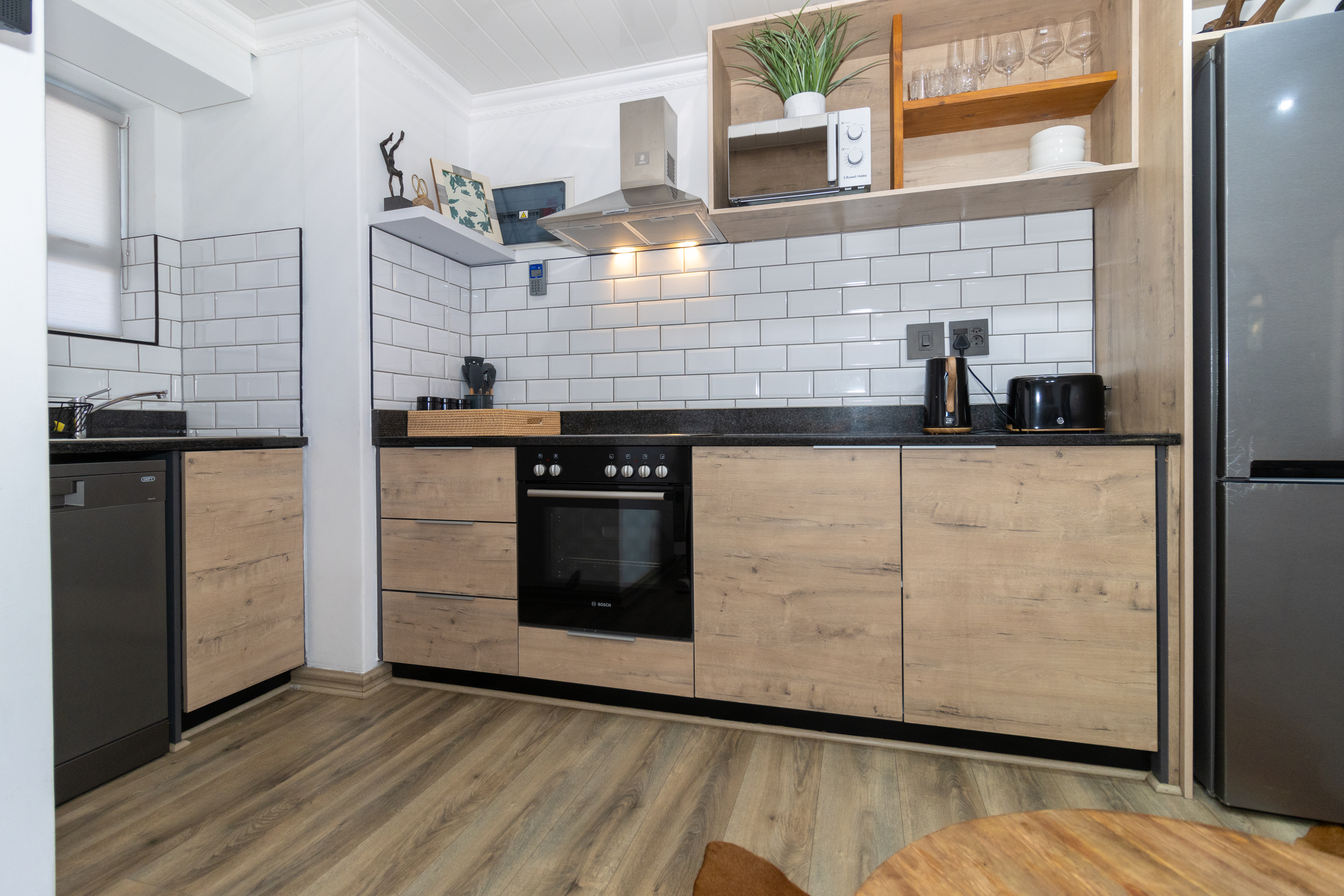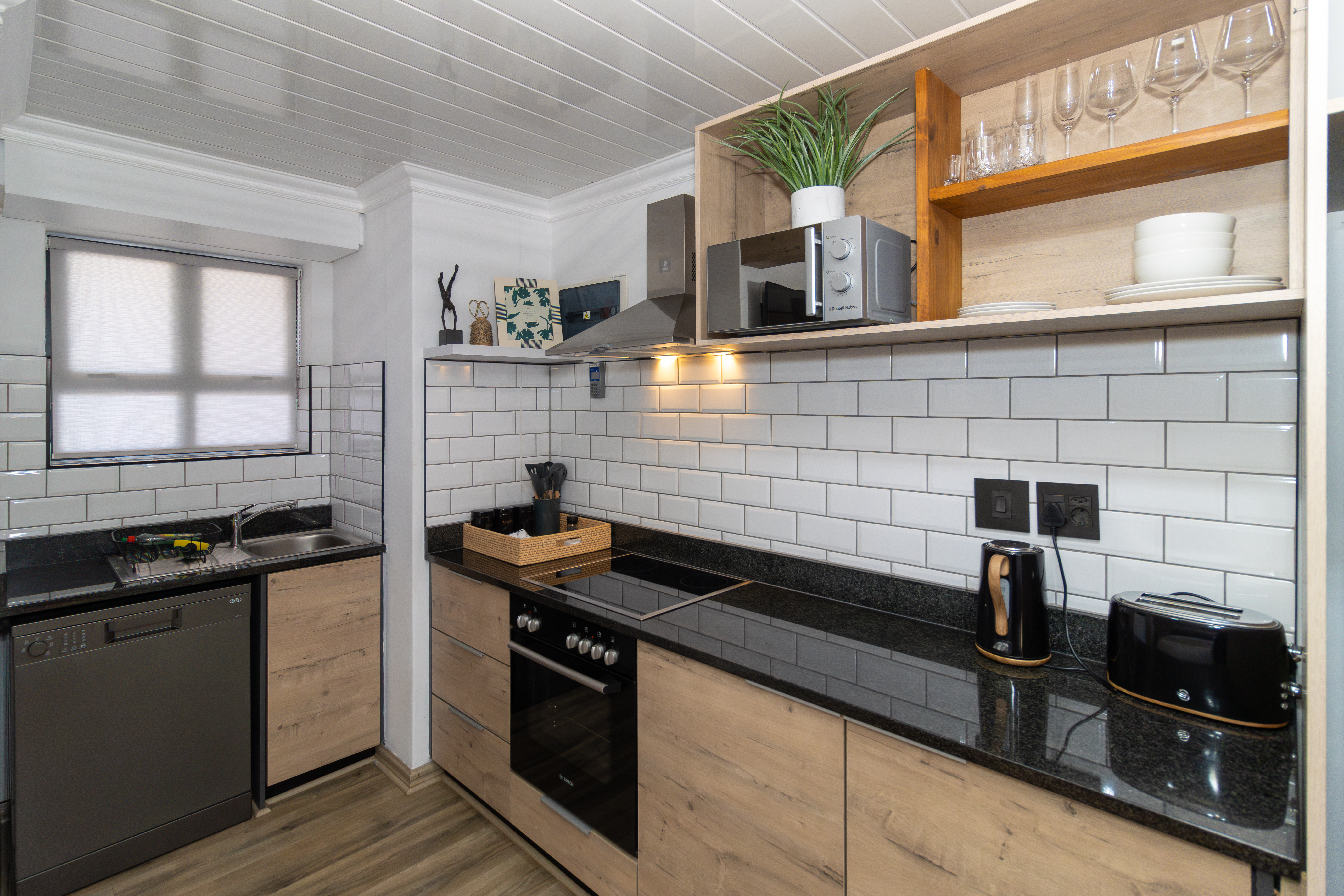 The open-plan layout seamlessly combines the kitchen, living, and sleeping areas, creating a light-filled space that maximises every square metre. The modern kitchen is finished with sleek cabinetry, subway-tile detailing, and quality appliances, all of which are included in the sale. Designed for both practicality and style, it flows effortlessly into the living area, which is comfortably furnished and complete with a wall-mounted television — making this apartment truly move-in ready.