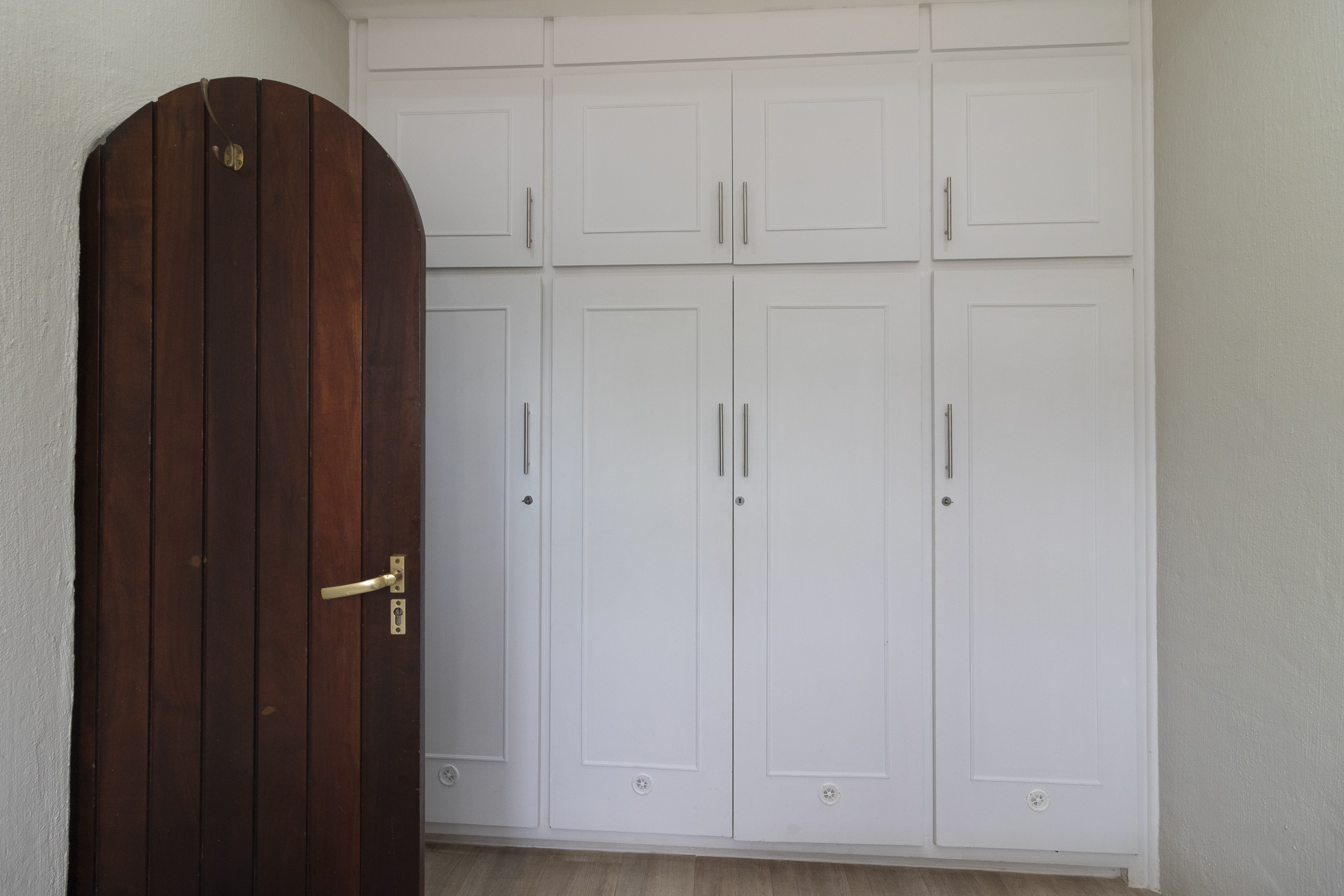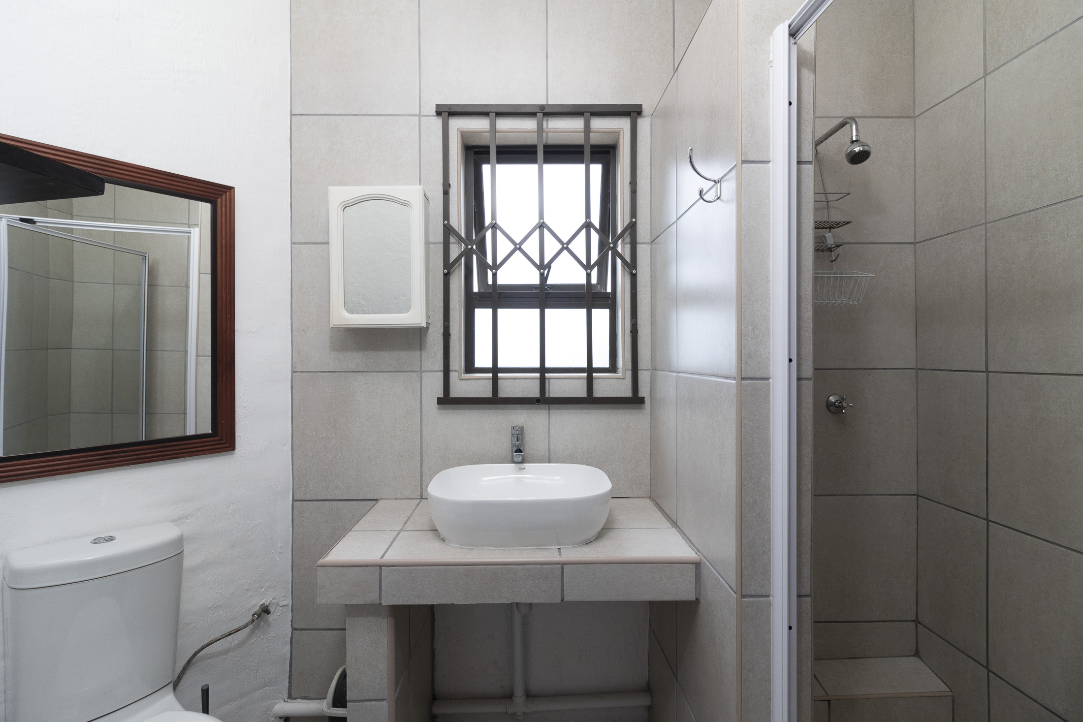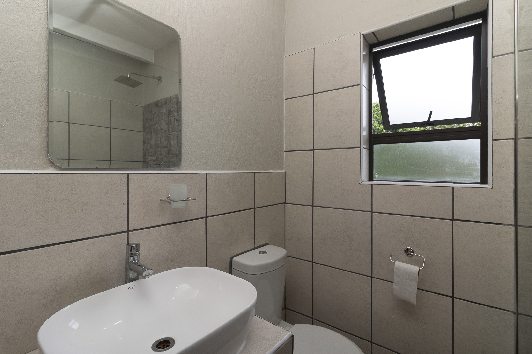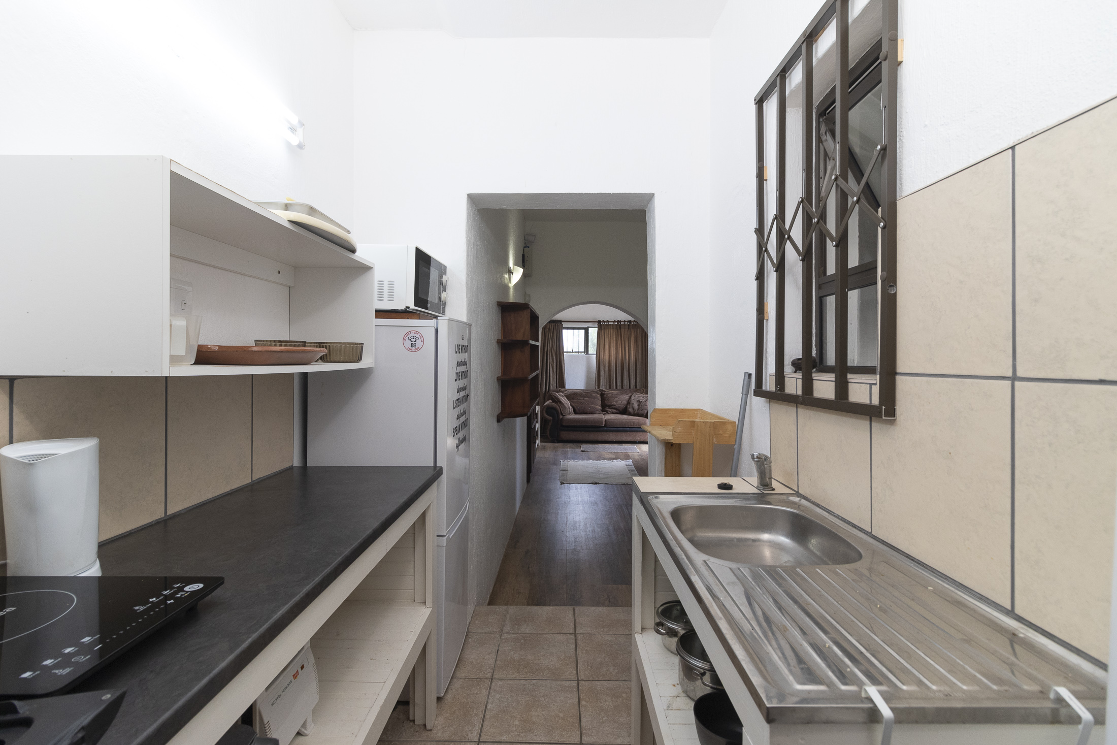 The separate entrance to the flatlet, accessible via Muirfield Avenue, leads to a double garage. This self-contained unit boasts a bedroom, bathroom, small lounge, compact kitchen, and a dedicated braai area.