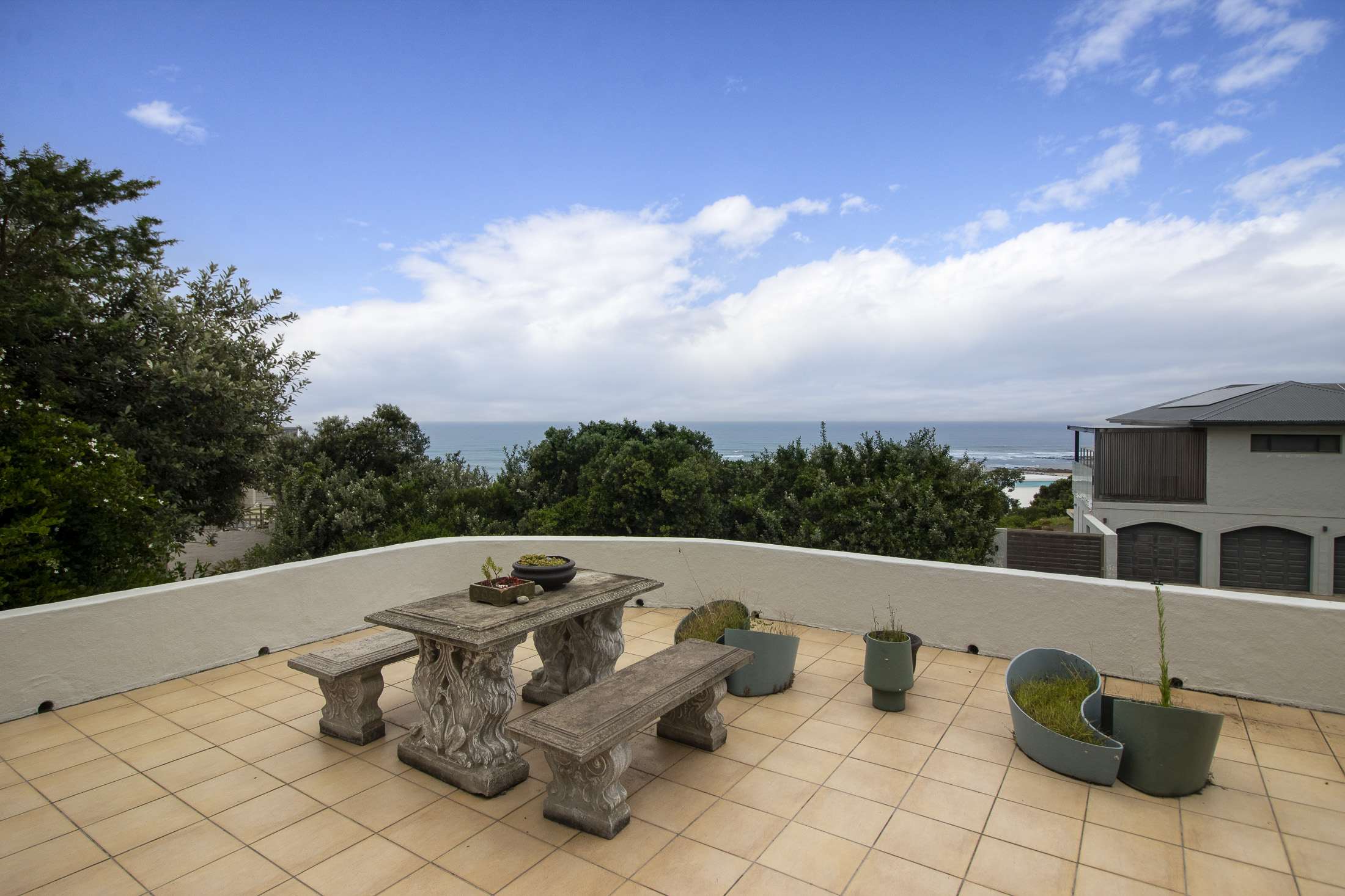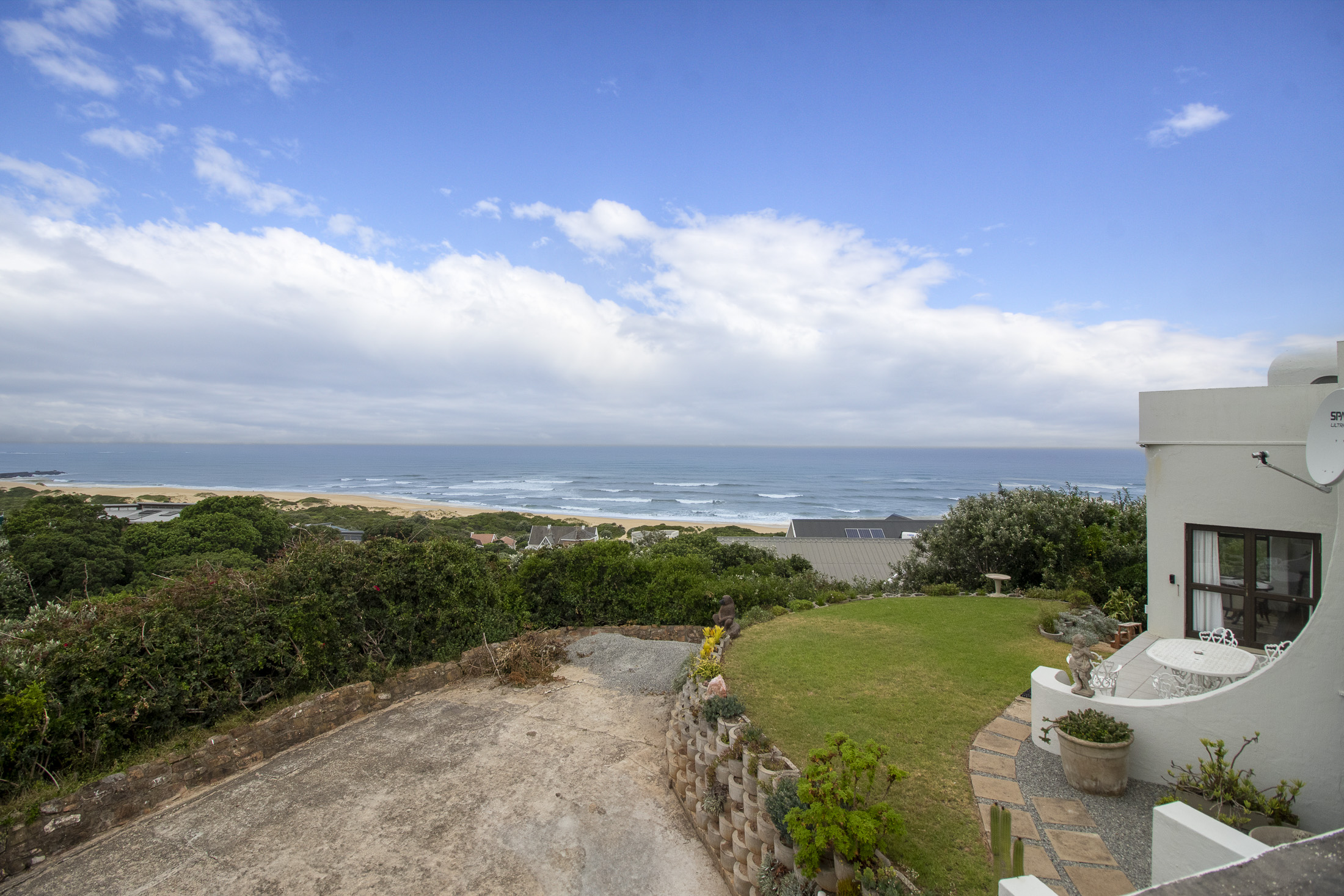Joint Mandate: Position, Position, Position! Situated in the West Beach area of Port Alfred, this residence exudes Spanish charm with a Mediterranean ambiance. Offering breathtaking panoramic views of the ocean, pier, and golf course from virtually every window, this property is a mere stroll away to the beach. Currently operating as an Airbnb, the main house presents an opportunity for expansion. With existing plans for additional accommodation or a flatlet above the garage, the potential for creating a space with spectacular views awaits those with foresight.
