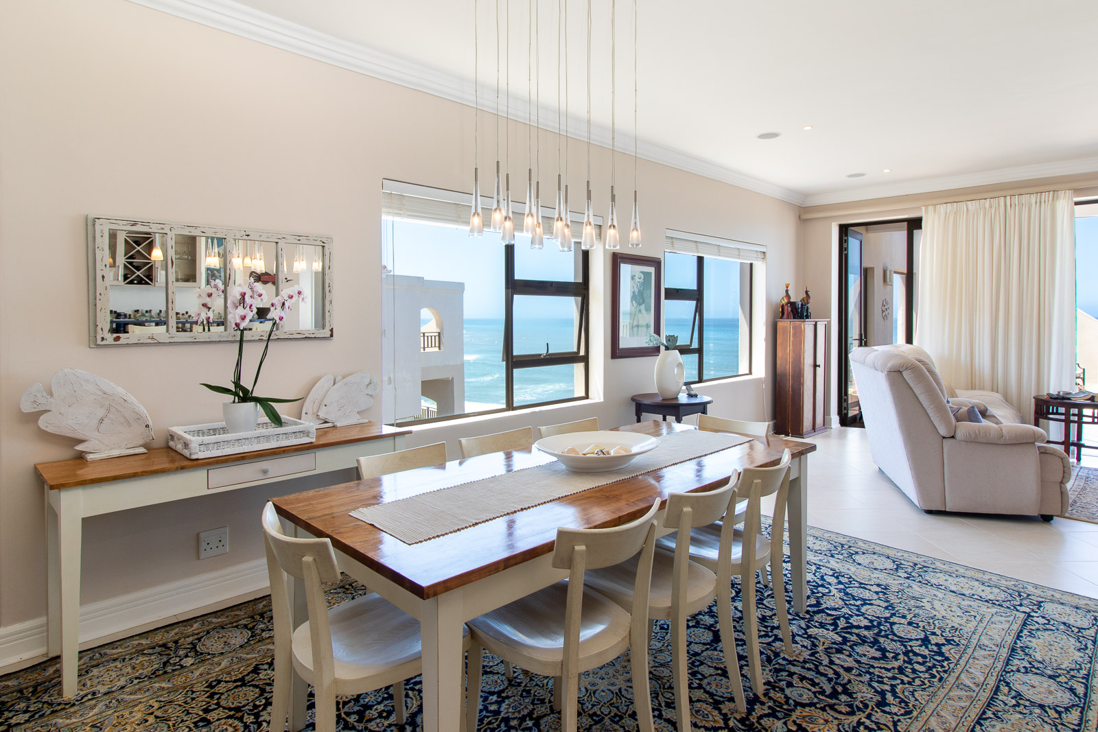 Positioned within the prestigious and highly sought after Flame Lily Terraces complex, this top floor penthouse offers an exceptional coastal lifestyle of luxury, space and uninterrupted sea views, right on the beach in Port Alfred. Wake up to the sound of the ocean and spend your days immersed in panoramic views that stretch across the living areas, the master suite and the expansive balcony. From this elevated vantage point, enjoy whales breaching offshore, fishing boats passing by, and the soothing rhythm of coastal life — a daily reminder that you are living somewhere truly special. The apartment has been designed for effortless seaside living. The spacious open plan living and kitchen area flows seamlessly, creating a warm and inviting space ideal for entertaining. Stacking doors give way to a generously proportioned patio, and a built-in bar becomes the natural gathering point for relaxed evenings with family and friends, while the modern, well appointed kitchen with granite countertops and a separate scullery ensures both style and practicality. The master suite is a private sanctuary, offering generous built-in cupboards, a large en suite bathroom, and direct access to those mesmerising ocean views. Three additional en suite bedrooms, along with a second lounge, provide ample space for guests and extended family, making this penthouse perfectly suited to both permanent living and luxurious holiday escapes. Adding to the lifestyle appeal, residents enjoy access to a communal swimming pool and braai area, perfect for long summer afternoons and relaxed social gatherings. A secure gate opens directly onto the beach, allowing you to step straight from the complex onto the sand — ideal for morning walks, beach days and sunset strolls along the shore. Further features include three automated garages, tiled living areas, and carpeted bedrooms for comfort and refinement. This is a rare opportunity to secure a luxury beachfront penthouse in one of Port Alfred’s most exclusive complexes — where every day feels like a holiday and the ocean is truly part of your lifestyle.