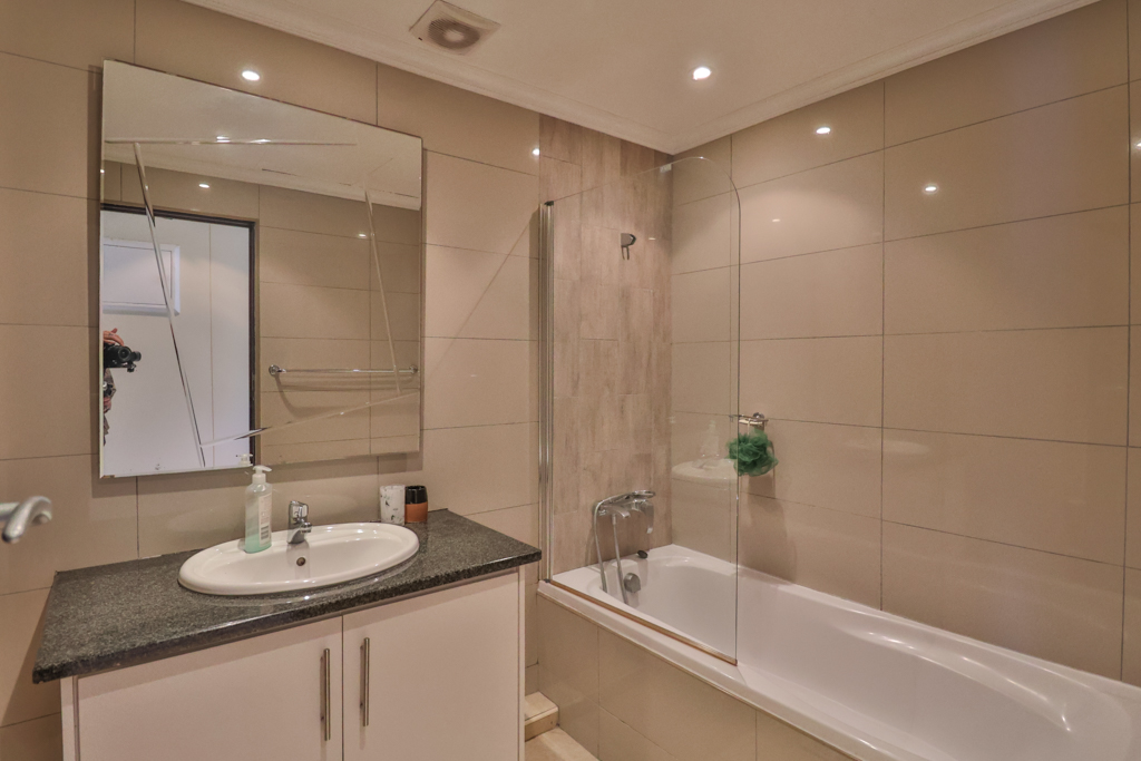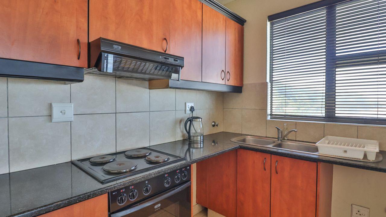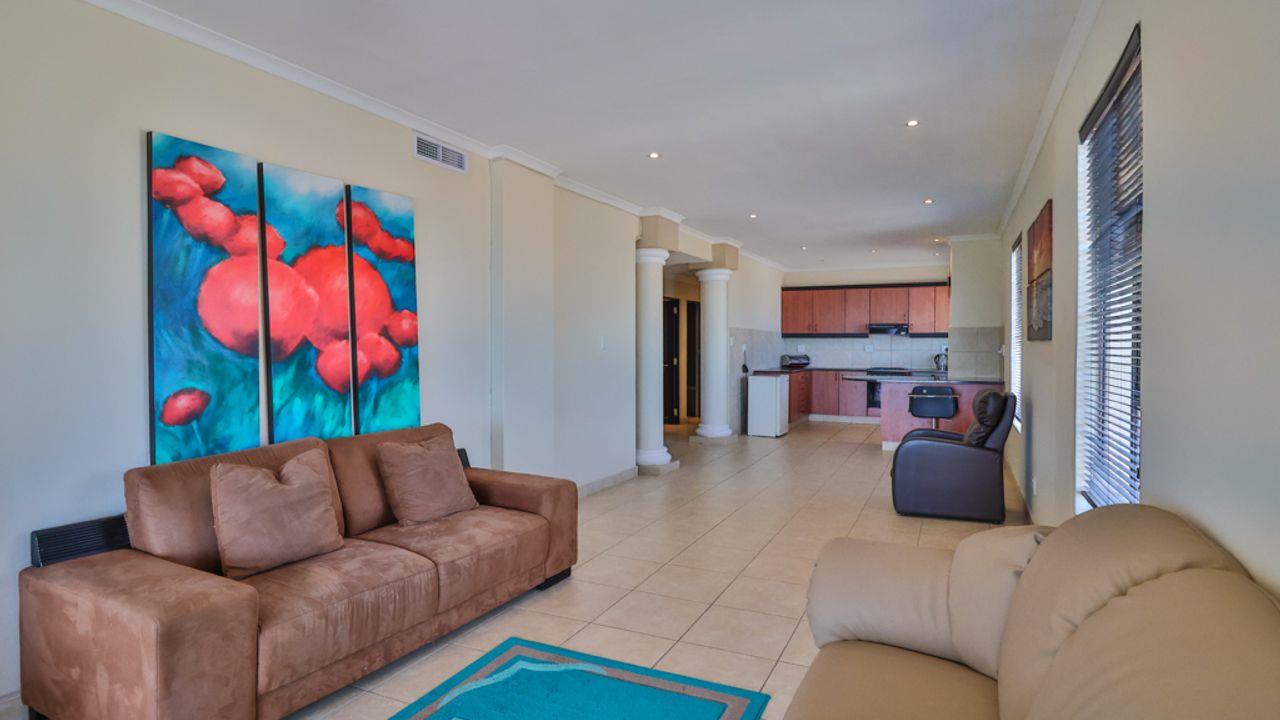 The timeless interior includes an open plan lounge, dining room, kitchen and spacious bedrooms with ample cupboards. Glass doors from both lounge and main bedroom lead onto the balcony. A large single garage completes the picture.
