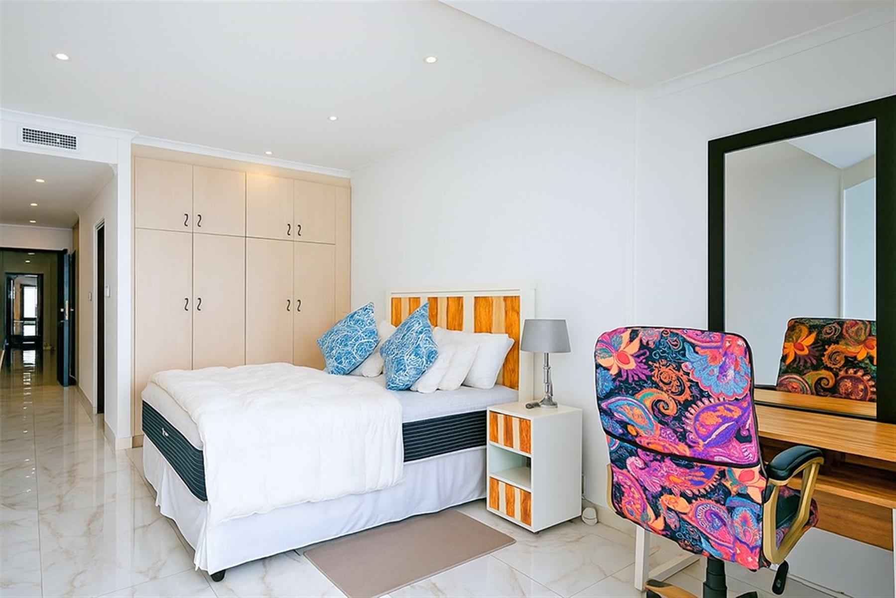 This beautifully appointed, fully furnished apartment features four generous bedrooms (two with en-suite bathrooms) plus an additional modern shared bathroom.