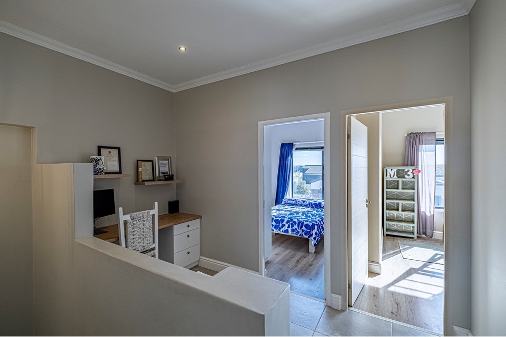 The double remote access garage leads directly into the house, while the covered braai area with built in braai and roll up blinds offers a relaxed space for outdoor dining and year round entertainment. The fully enclosed yard provides a safe and spacious area for children and pets to enjoy.