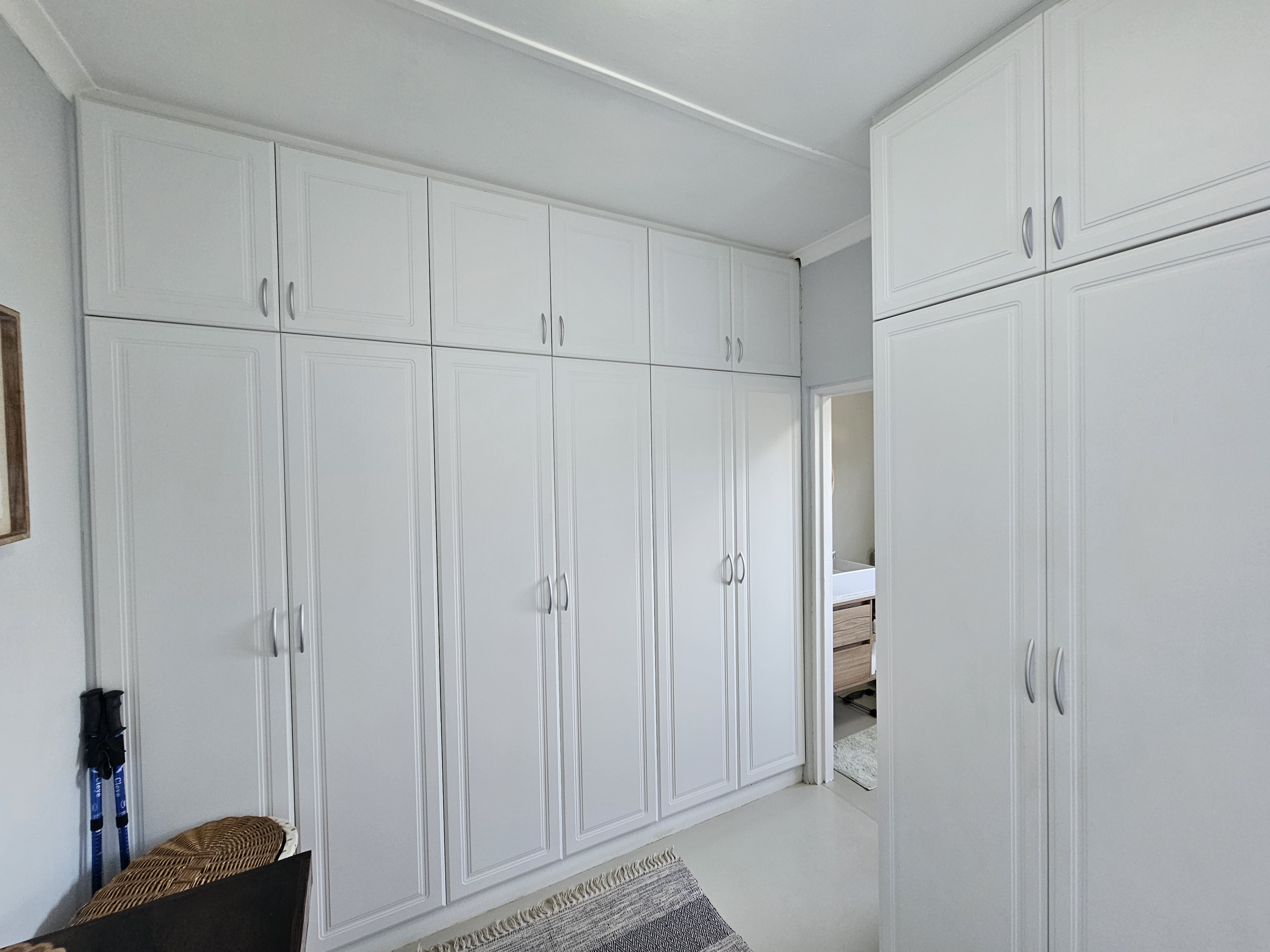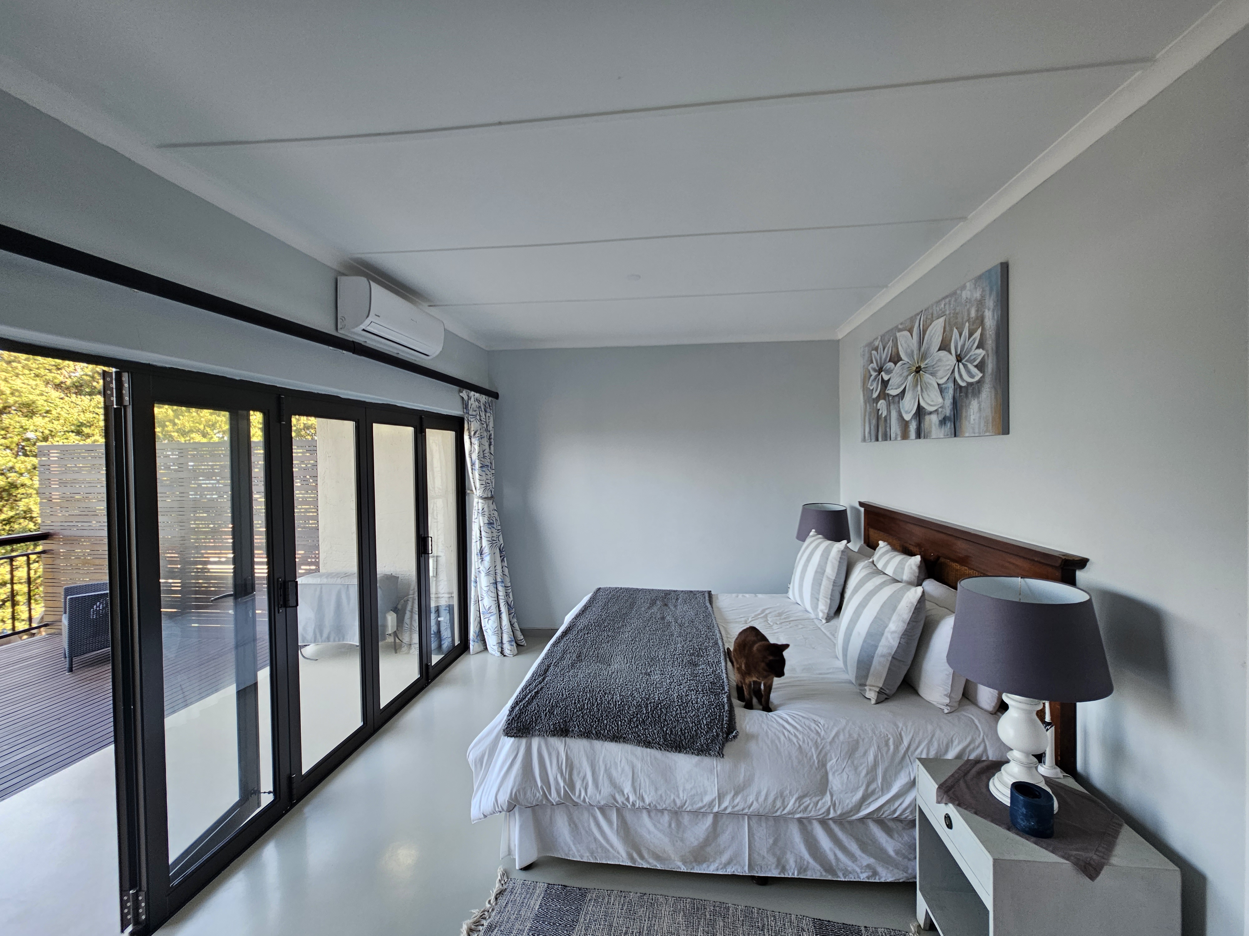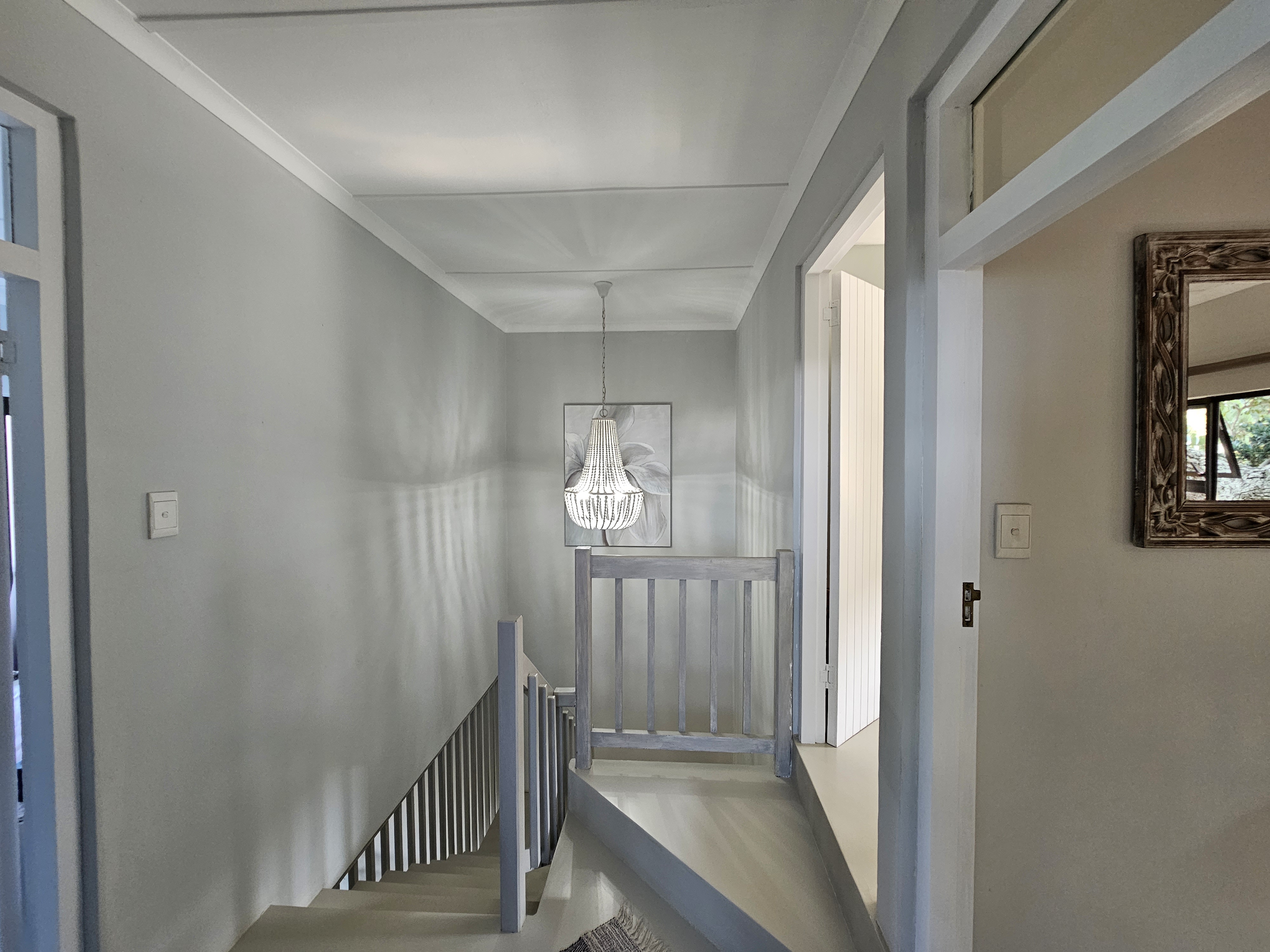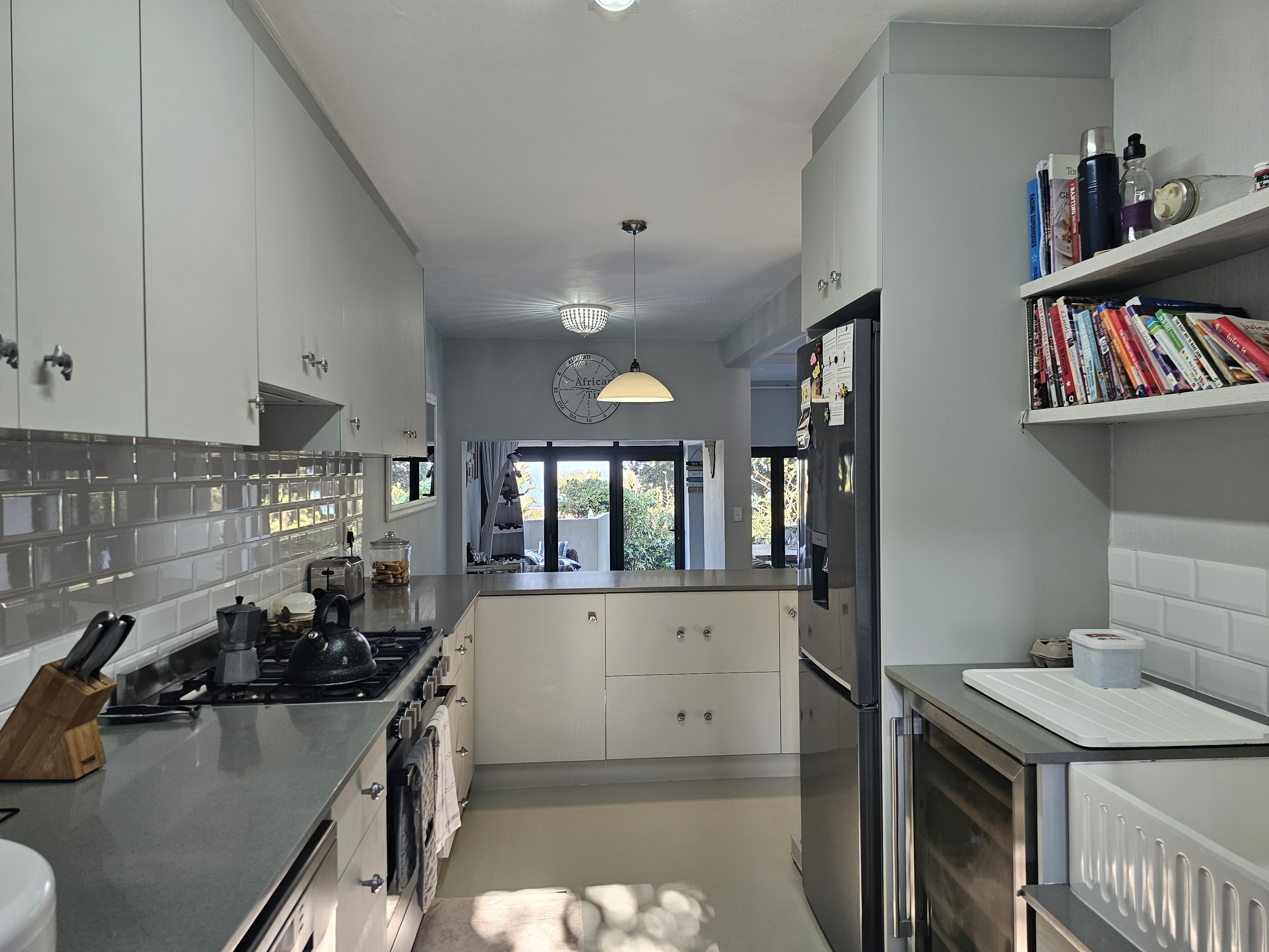 Three spacious bedrooms, two modern bathrooms. Open-plan kitchen with gas stove, dining room, and lounge leading to a covered patio overlooking the pool. Well-enclosed garden leading down to pool and direct beach access.