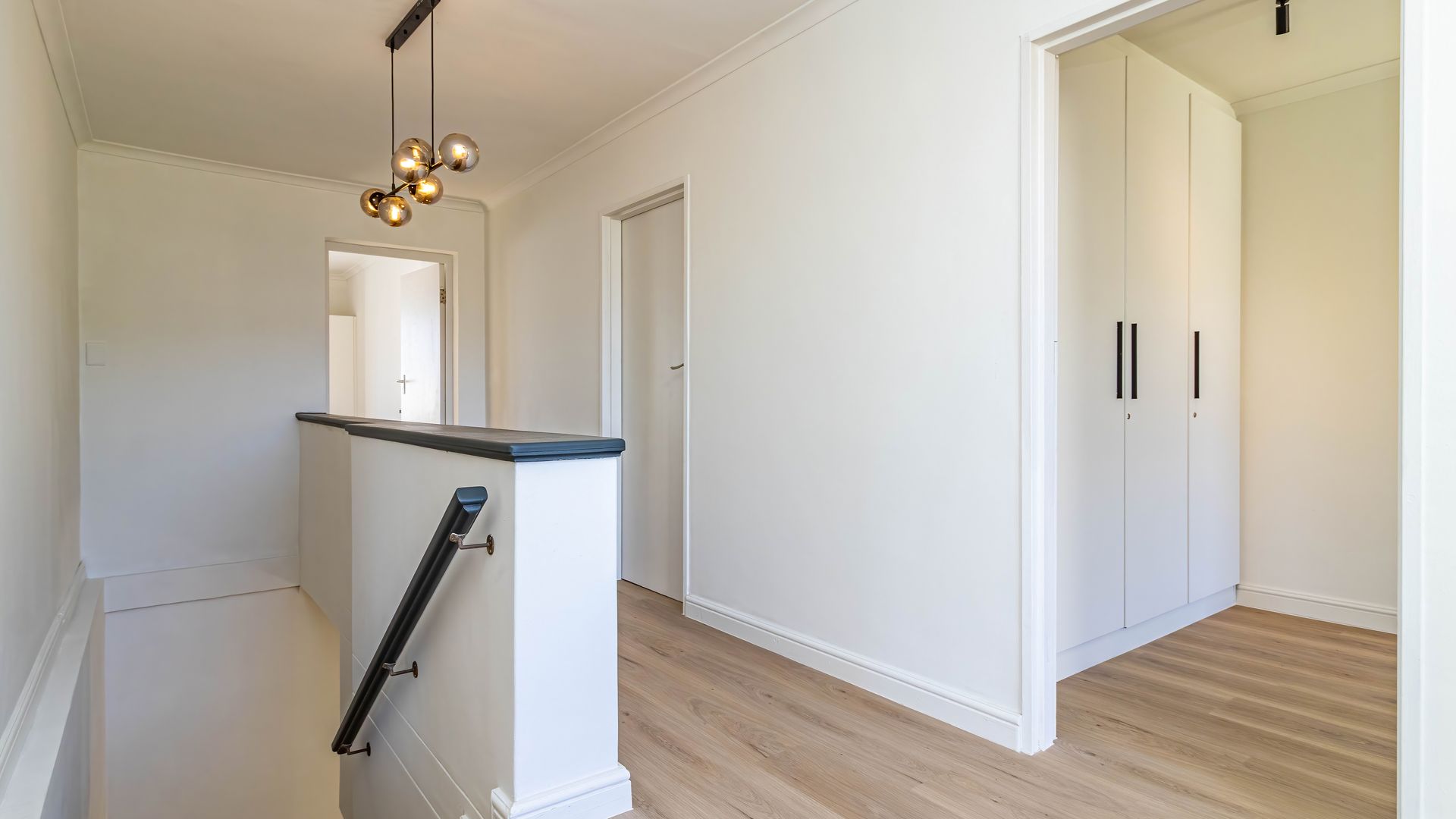 The upstairs features four en-suite bedrooms and a balcony.