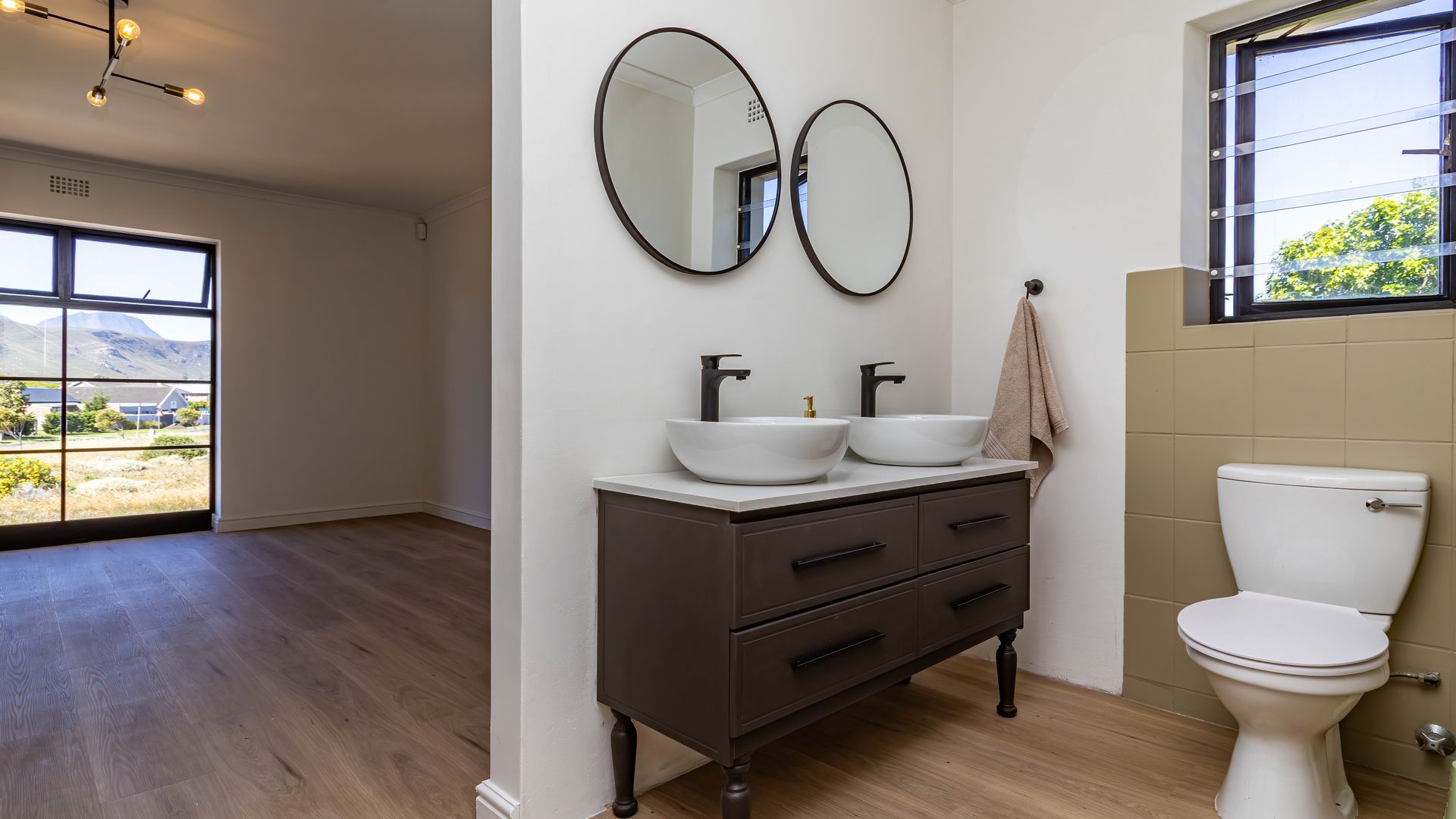 Wake up watching the sun rise from your bed - over the fynbos common and Kleinrivier mountains.