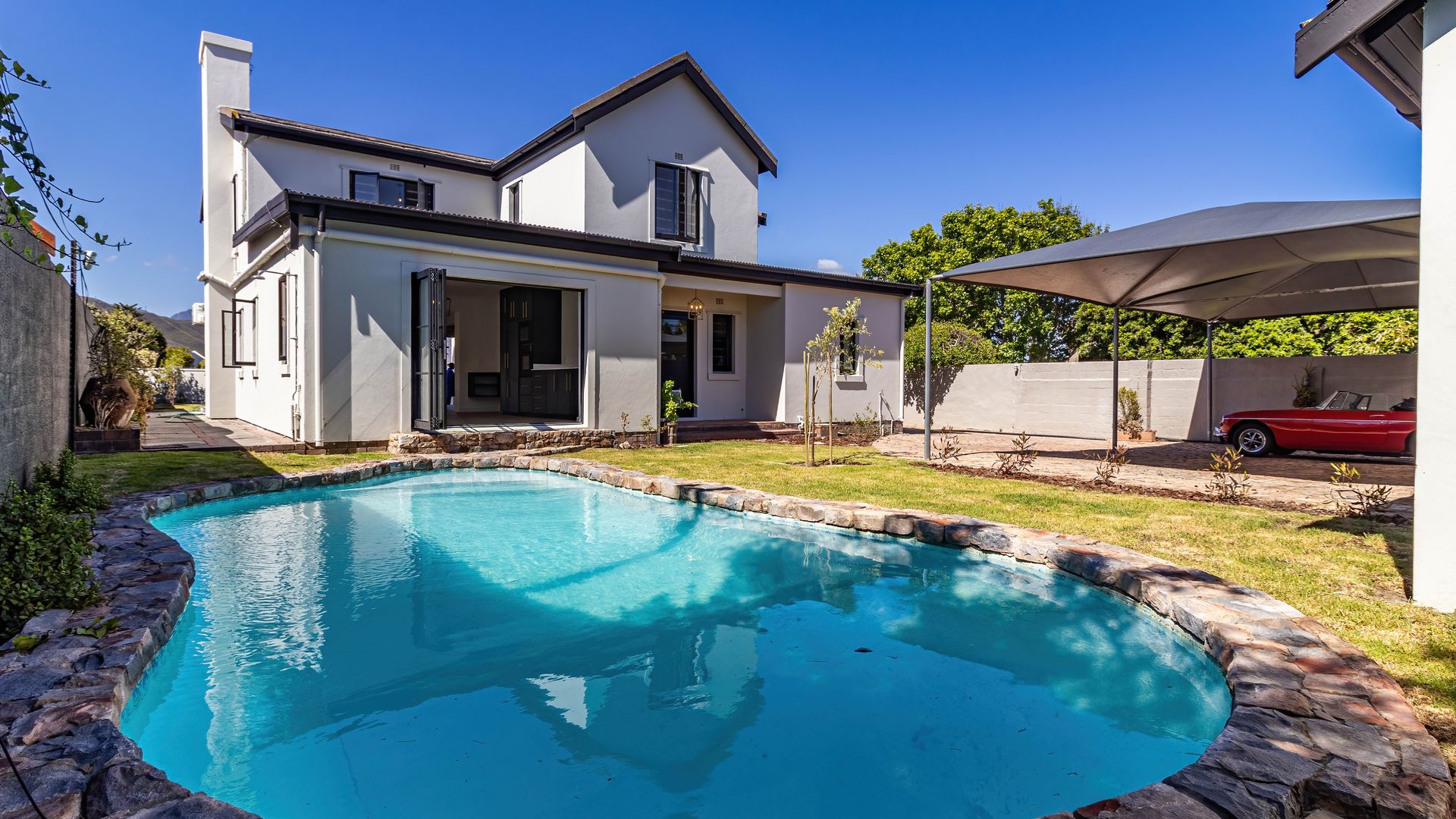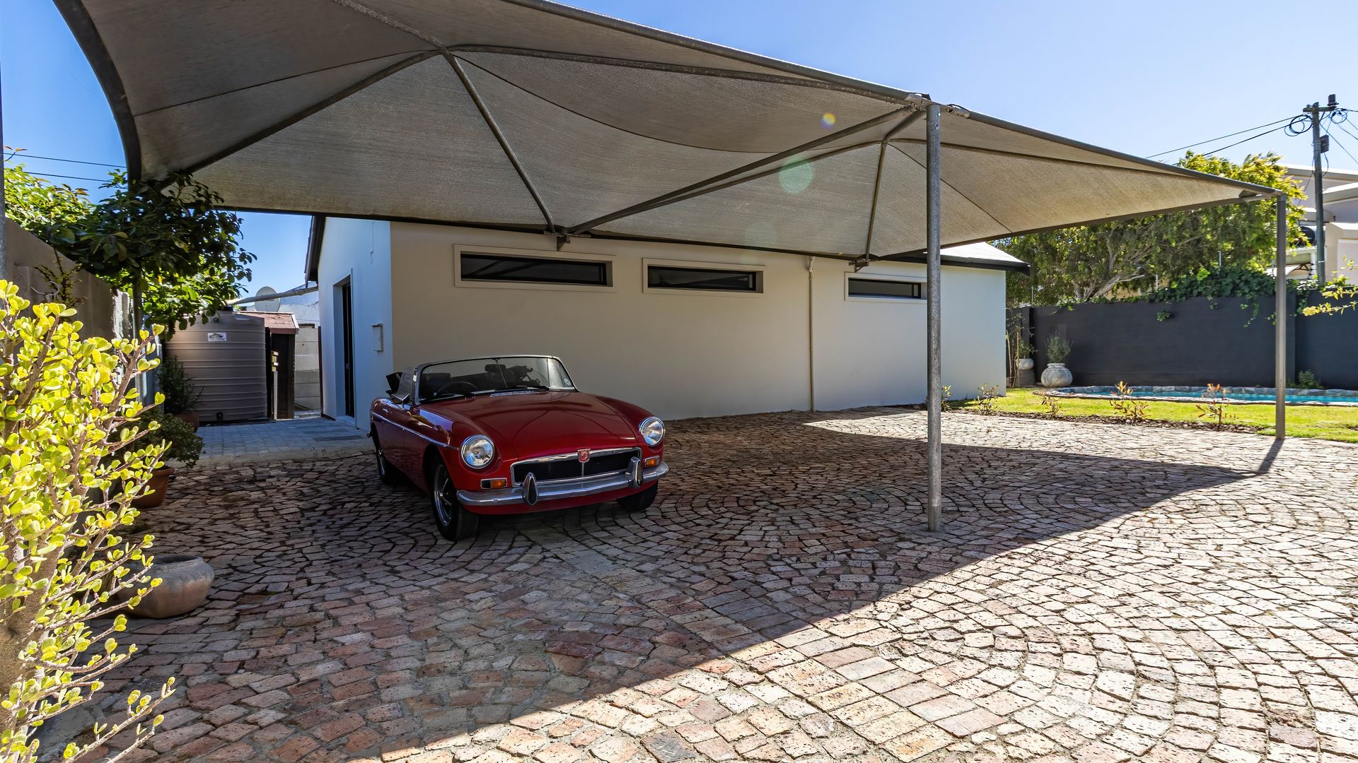 A scullery and laundry coming through the kitchen. Large shade port for parking 3 or 4 cars.