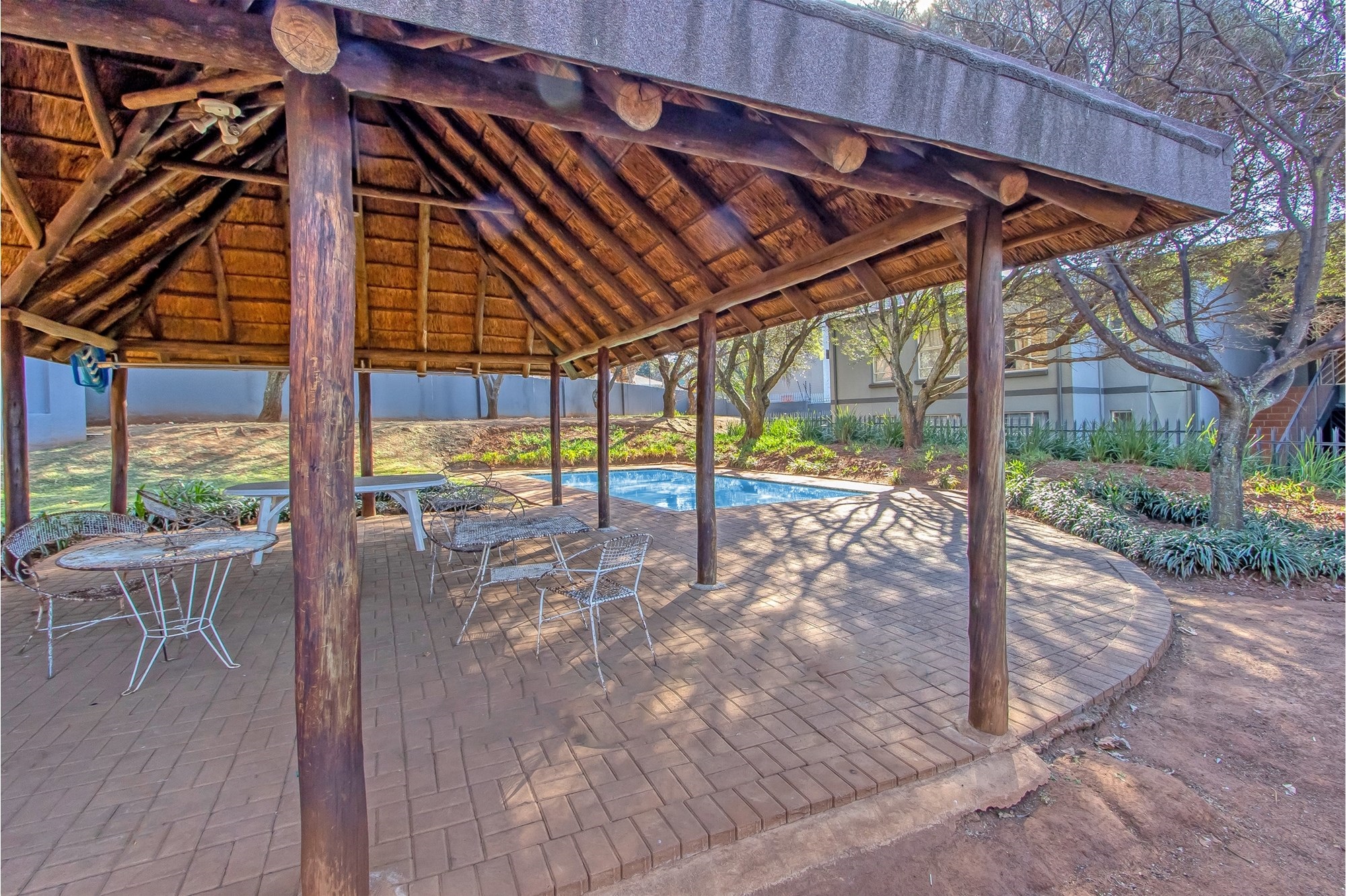 Fenced pool area, with covered seating, open grass area and braai spots. Communal laundry room with an outside drying area.