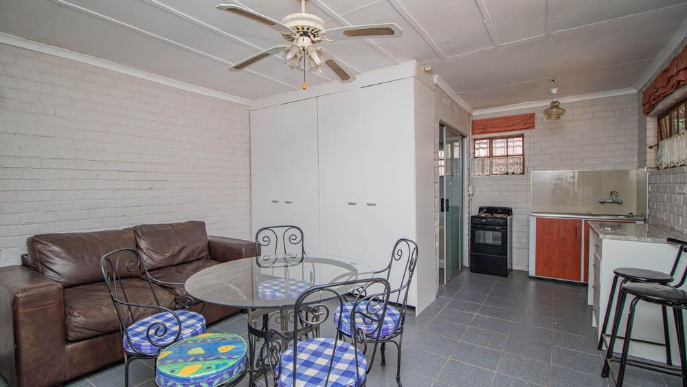 Step outside to enjoy manicured gardens and a solar-heated pool, perfect for relaxing or entertaining guests. Additional outdoor features include two storerooms, a laundry room, an external toilet, and a lapa complete with a braai area for those delightful braai evenings.