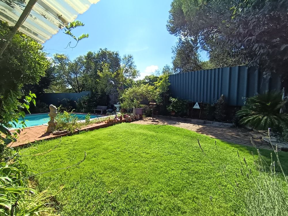 Outside, you’ll find a beautifully maintained garden, a large sparkling blue swimming pool, and the added bonus of a fully installed irrigation system, ensuring easy garden maintenance year-round.