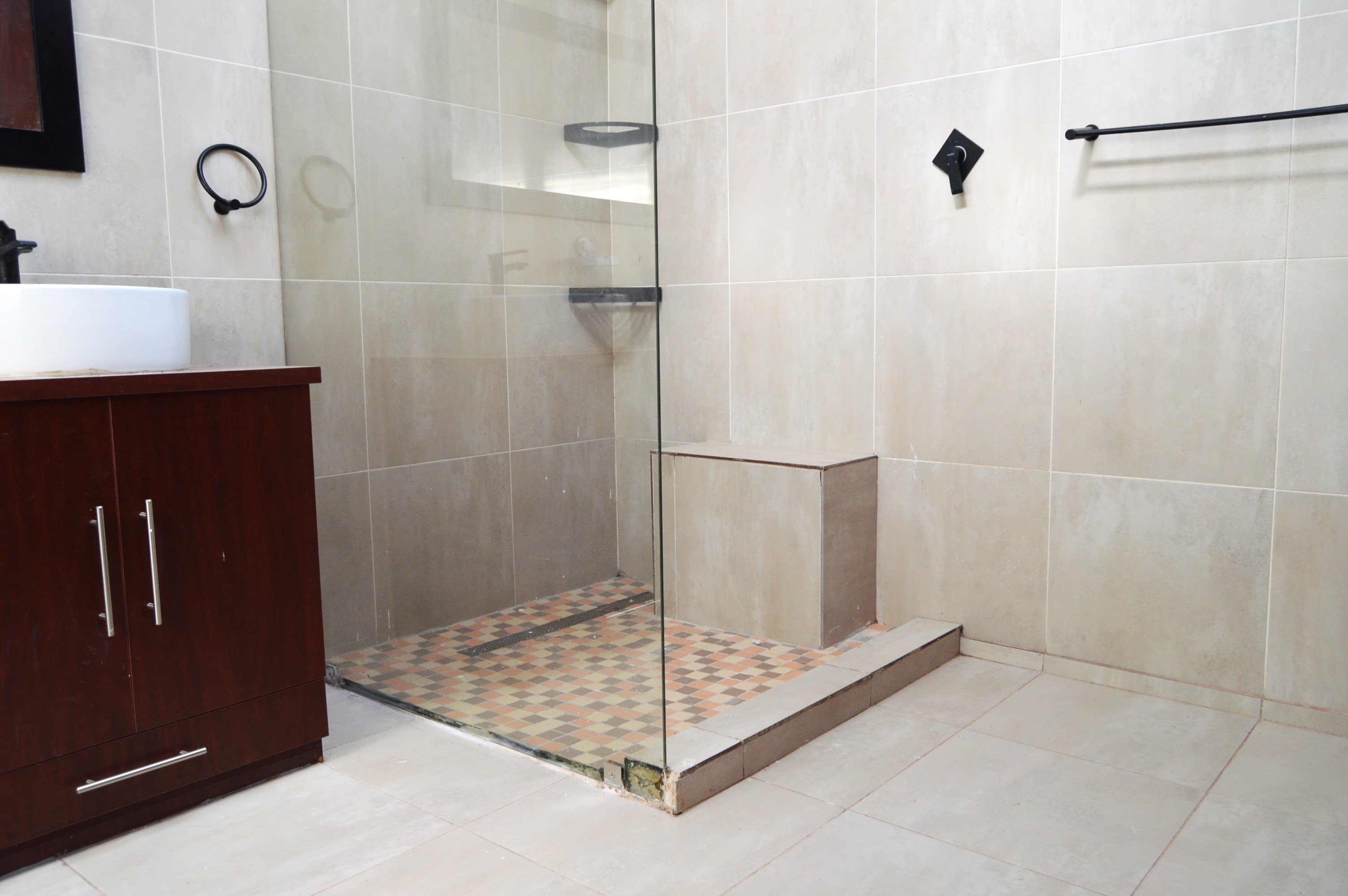 Each bedroom boasts ample space for a double-sized bed and includes built-in cupboards for added storage ease. The master bedroom enchants with a walk-in closet and an ensuite bathroom featuring both a shower and a bath, ensuring luxurious relaxation.