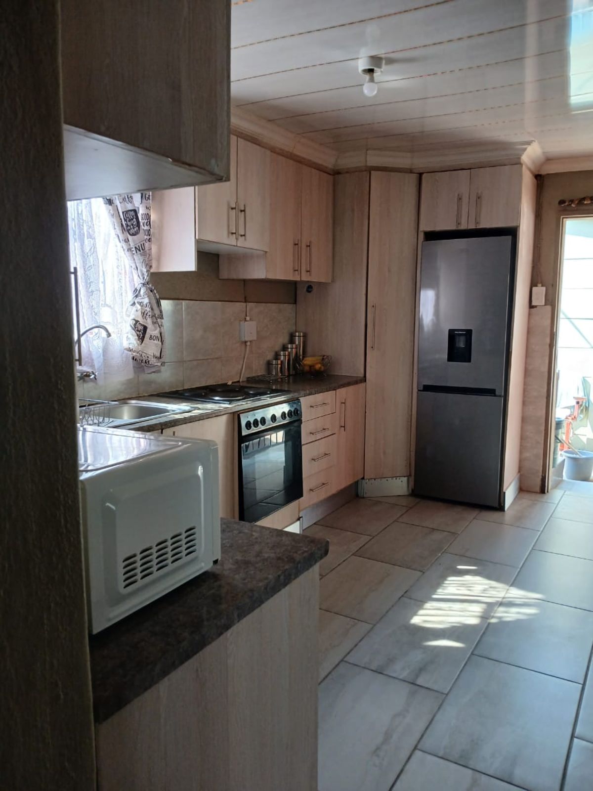 This newly renovated home offers 3 bedrooms and 2 bathrooms, with the main en-suite partially unfinished, allowing the new owner to add their own finishing touches. The property features a neat kitchen and lounge, creating a comfortable living space.