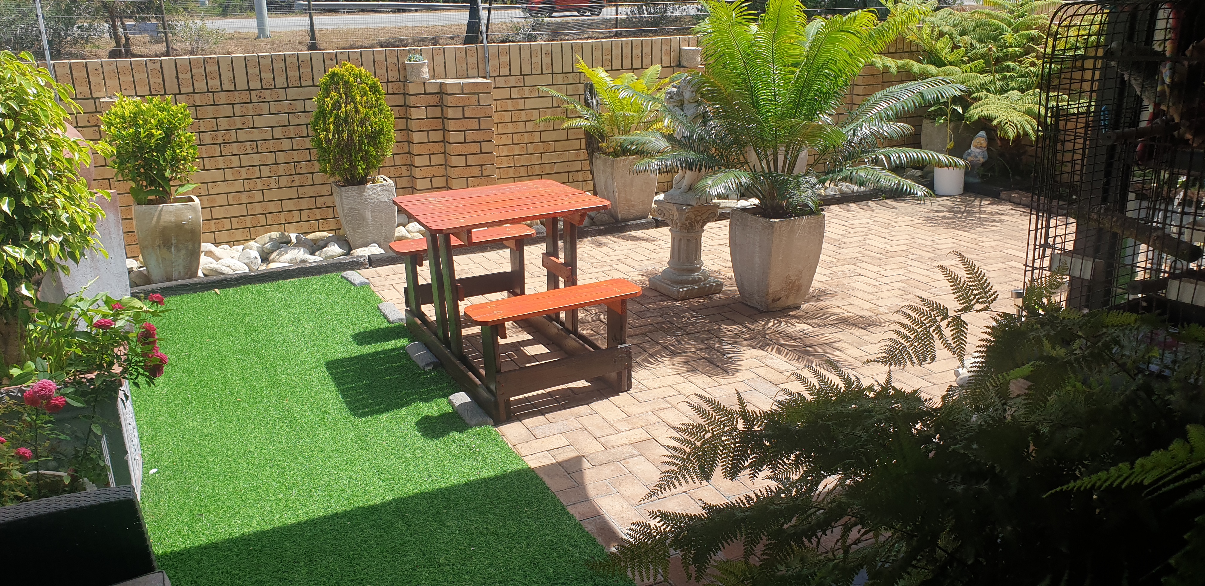 The kitchen is well fitted with ample cupboard space and includes a gas stove for efficient, cost-effective cooking. Added extras include an inverter for uninterrupted power supply and 2 000 litre water tanks, ensuring peace of mind during outages.