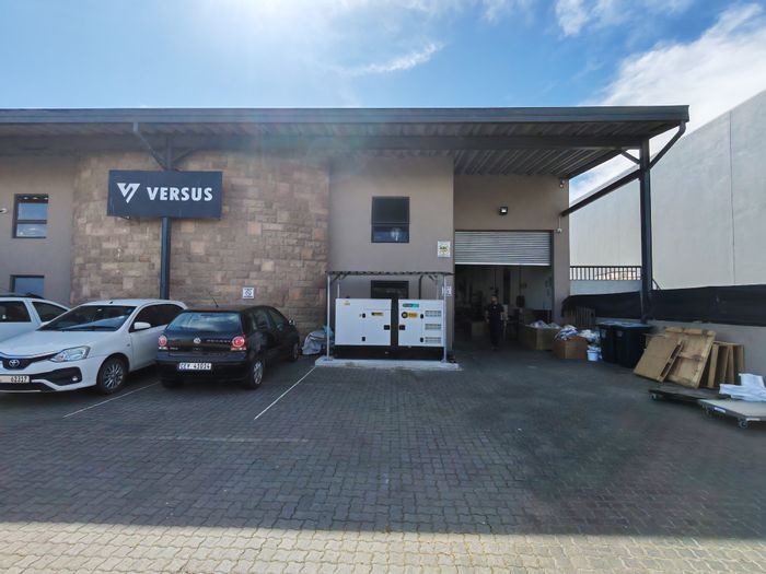 Industrial unit in Saxenburg Park offering robust on-site power (800kVA) plus 500kVA generator, high eaves, two roller doors, secure yard, 24-hour park security, minutes from R102/R300.