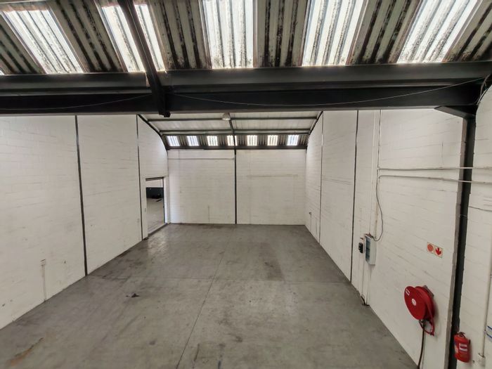 Secure, well-located industrial unit ideal for logistics with quick R102/R300 access and nearby Zewenwacht Mall; features large roller shutter, shared enclosed yard/parking, two bathrooms.