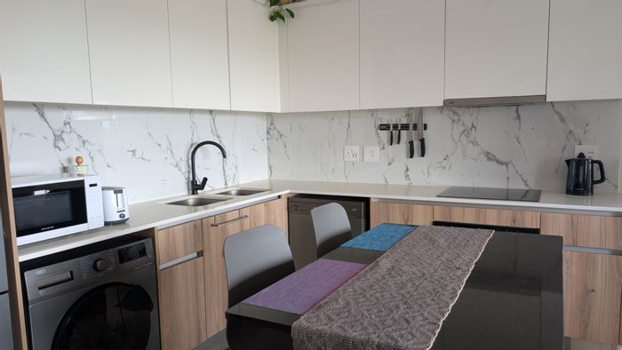 Lock-up-and-go coastal lifestyle in Sandown, Blouberg — walking distance to Tableview Mall and the beach. Fully furnished apartment with private balcony and Table Mountain views, two ensuite bedrooms.