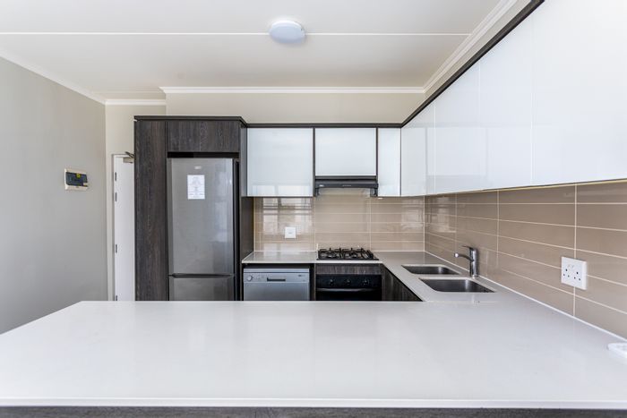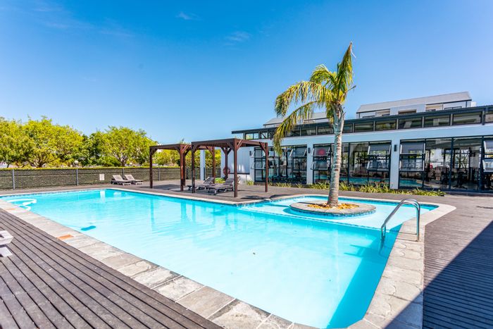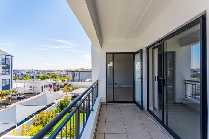 Coastal convenience near Blouberg beaches and shopping, in The Sandown complex — open-plan living with a private balcony, quality kitchen finishes, 24-hour security; one bedroom, one bathroom.