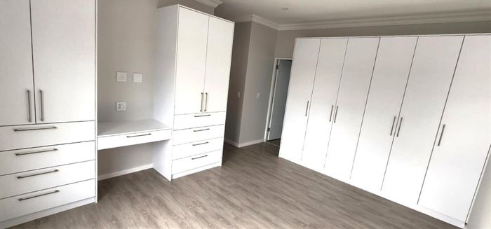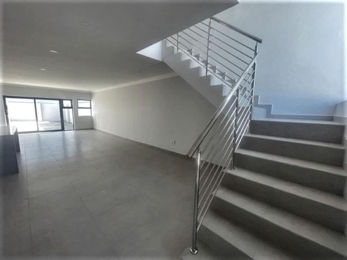 Enjoy secure, family-focused living in Sandown North Enclave with landscaped walkways and nearby schools; open-plan entertaining extends to a covered patio with built-in braai and lawned garden.