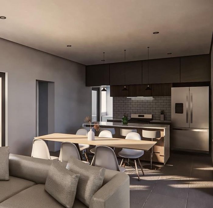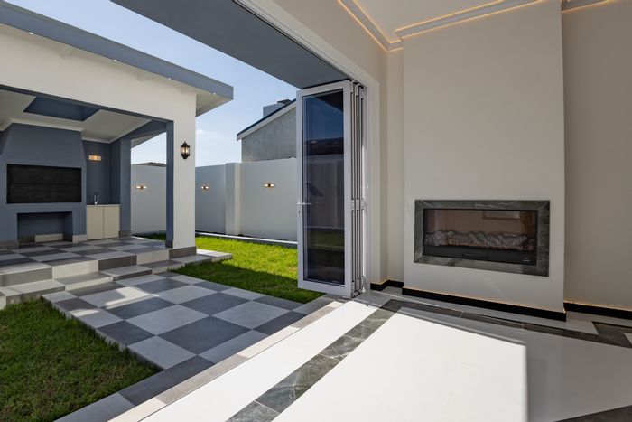 Effortless entertaining and modern living in Sandown, Cape Town, with open-plan living flowing to a covered entertainment patio with built-in braai. Three bedrooms, two bathrooms and double garage.