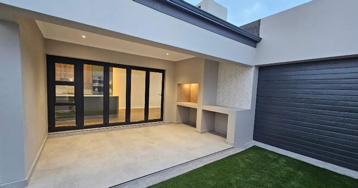 Private patio and modern kitchen for effortless entertaining in Sandown, minutes from hospitals, private schools, the R27 and revamped Sandown Retail crossing — four beds, three baths, double garage.