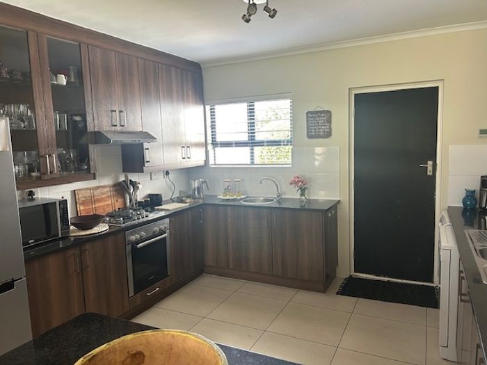 Year-round entertaining at a heated pool and enclosed braai room in secure Westwood Village Estate, Sunningdale, with cosy fireplace and manicured garden. Three bedrooms, two bathrooms, double garage.
