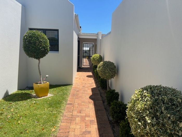Secure 24-hour over-50s village living minutes from West Coast Mall and Blouberg Netcare, with clubhouse, north-facing garden and covered patio with built-in braai — three beds, two baths.