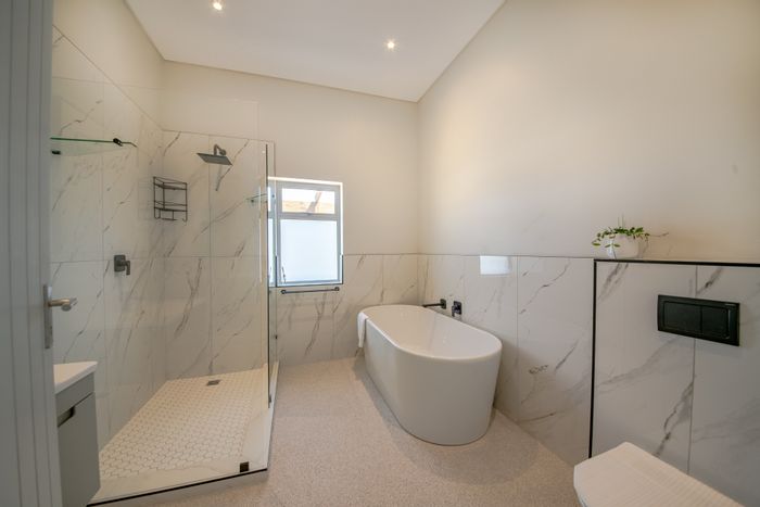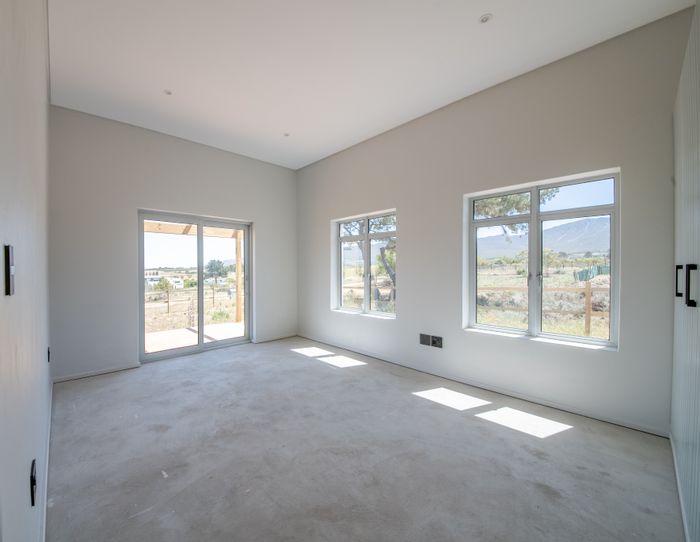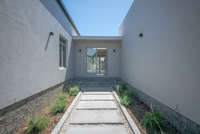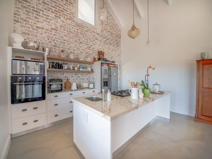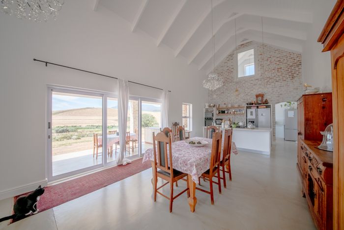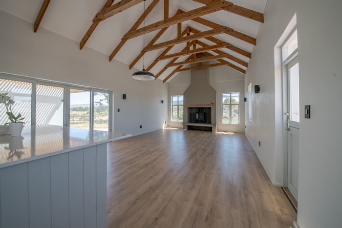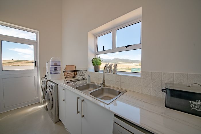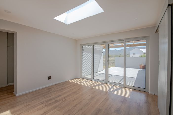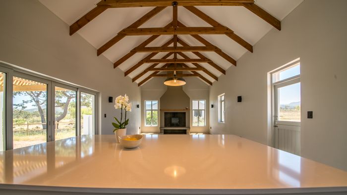 Secure country-living near Hermanus wineries and whale-watching, with expansive private grounds and protected patio — brand-new home featuring a 12kW enclosed wood fireplace; 3 beds, 3 baths, 4 covered parking
