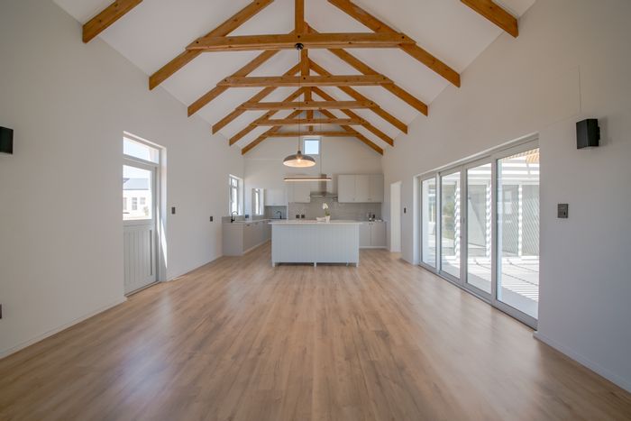 Entertainer's home in Botriver with expansive open-plan living centred on a huge indoor braai, private garden and effortless conversion to self-contained flats. Three beds, three baths, double parking.