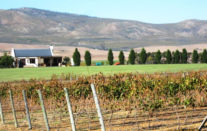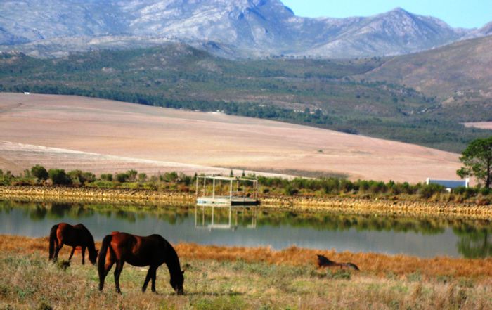 Wake up to vineyard, farmland and mountain views — even the steam train passing — in sleepy, central Botriver. Generous double-sized plot with water, electricity and dual street access.