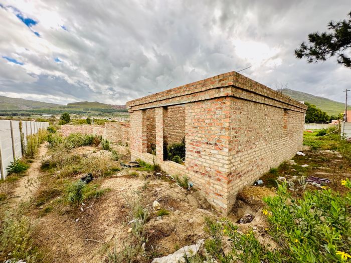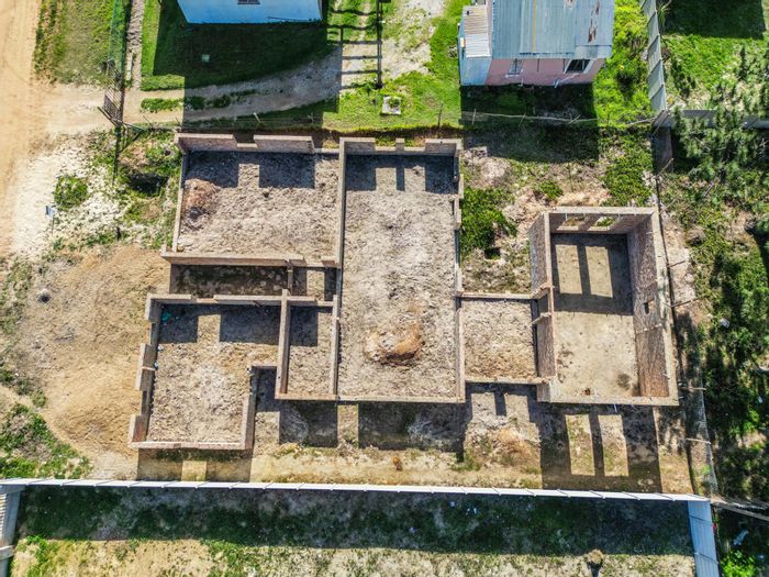 Vacant plot in Botrivier, 595 m², with foundations and partial walls for single or double floor plan.
