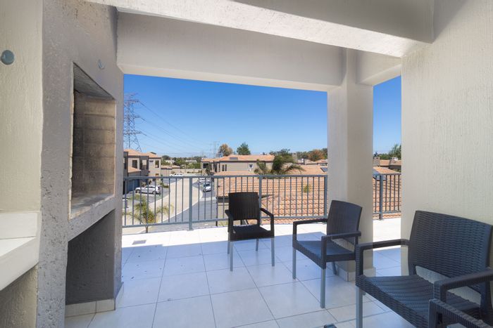 Effortless lock-up-and-go living near Pinehurst Centre and Cape Gate Mall in Protea Heights, Brackenfell — fully furnished first-floor 2-bed, 1-bath apartment with balcony and built-in braai.