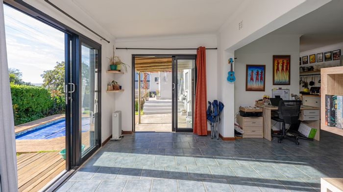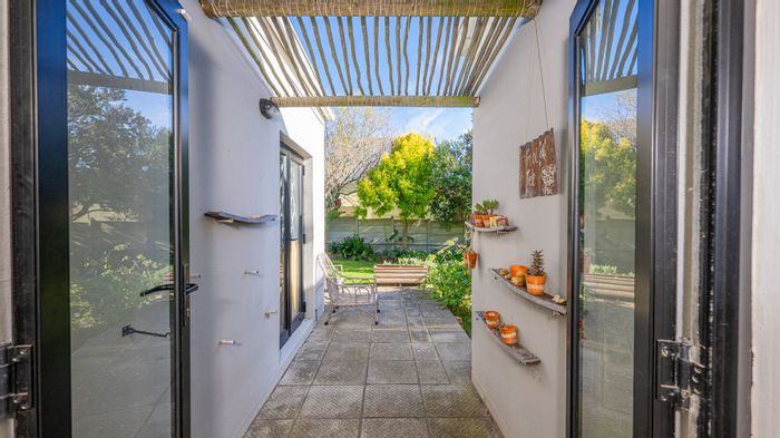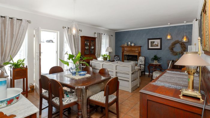 Enjoy relaxed, secure estate living near shops and clinics in Bredasdorp; open-plan living flows through French doors to a private garden with built-in braai, plus three bedrooms and double garage.