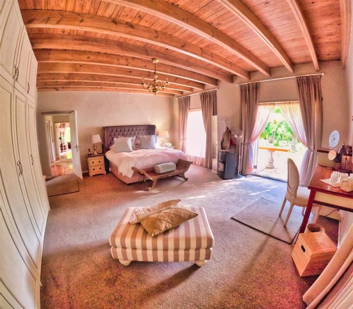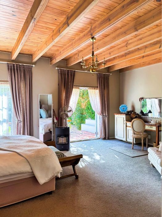 Riverside retreat at Greyton's nature-reserve edge — peaceful thatched Cape Dutch homestead with private crystal stream, irrigated oak gardens, braai courtyard and double garage; five beds, six baths.