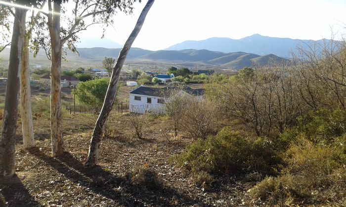 Land in Klein Karoo town with stunning views of town and Rooiberg/Swartberg Mountains, perfect for building a dream home.