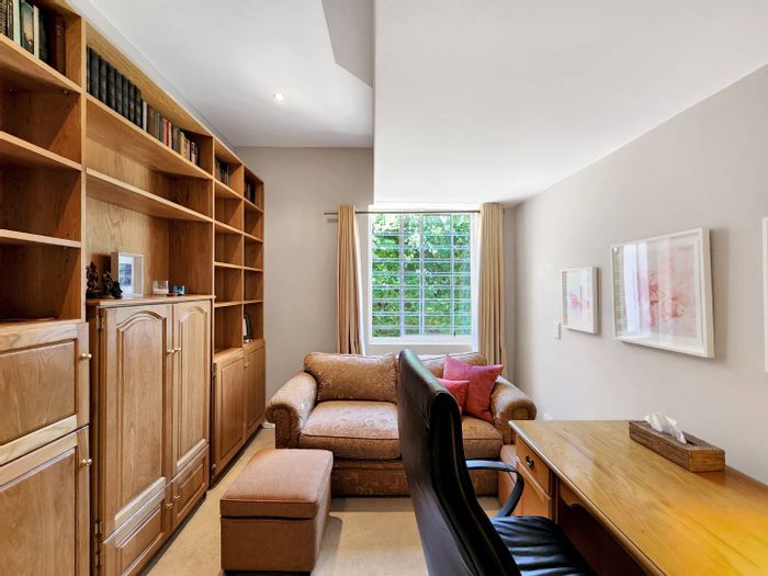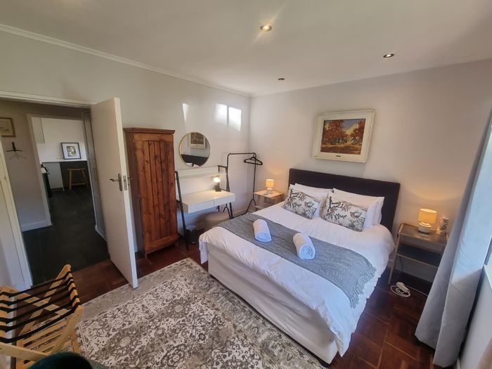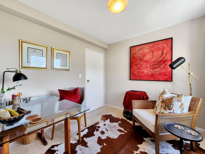 Urban living with green serenity atop Tamboerskloof, with sweeping Table Mountain and City Bowl views. Fully furnished with two en-suite bedrooms, office and single garage—walk to DSK and Blue Café.