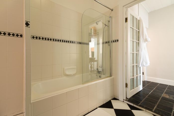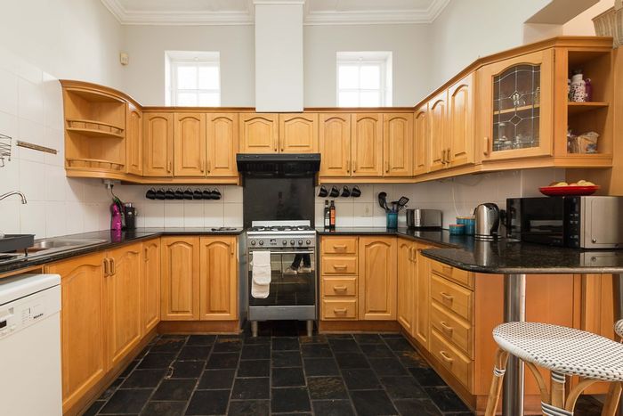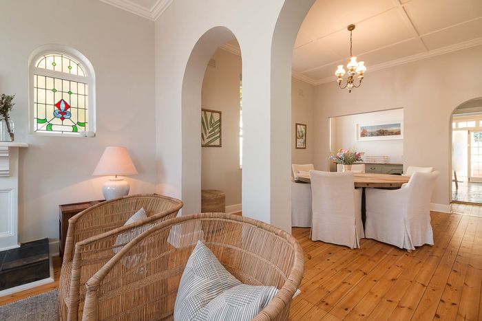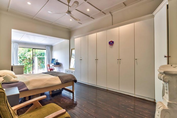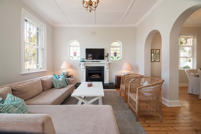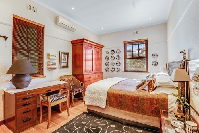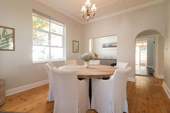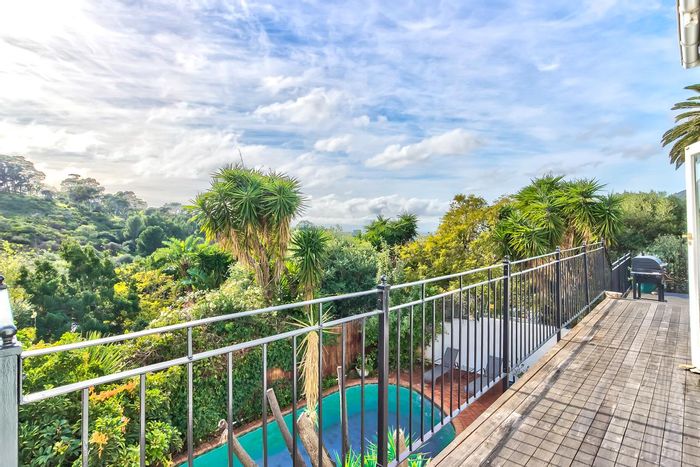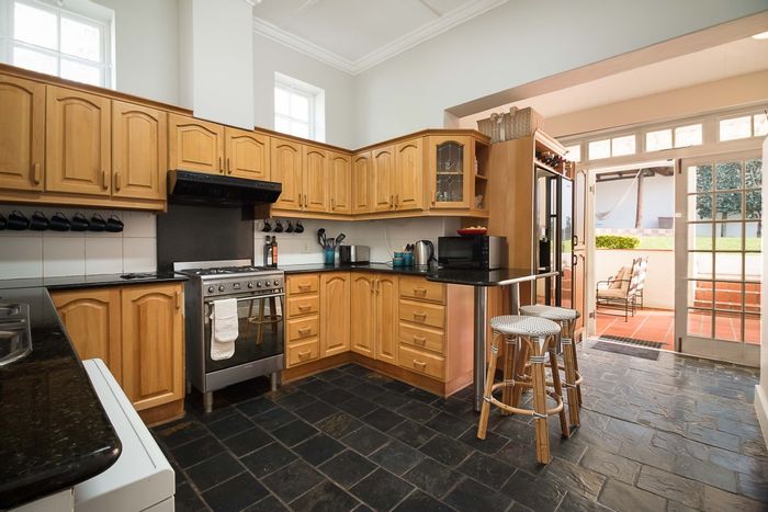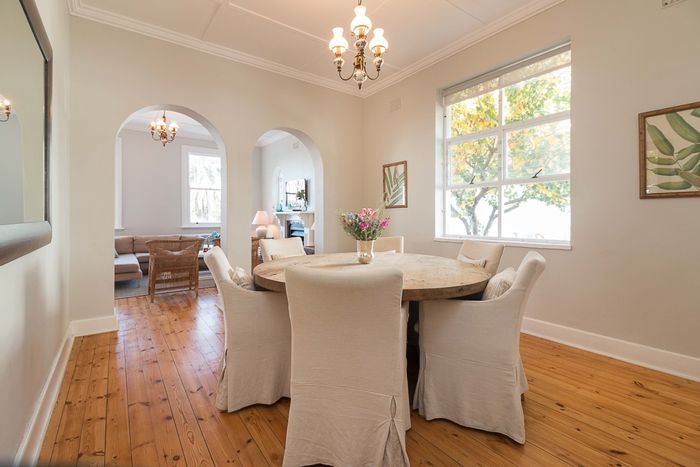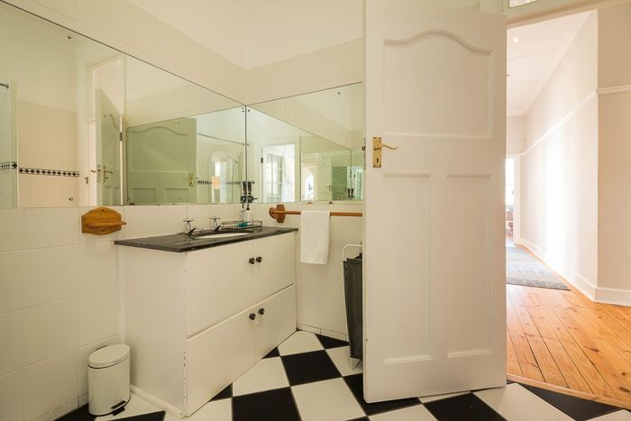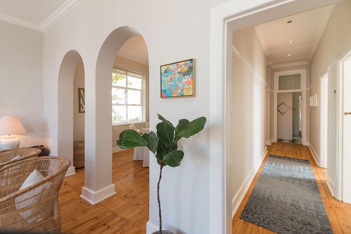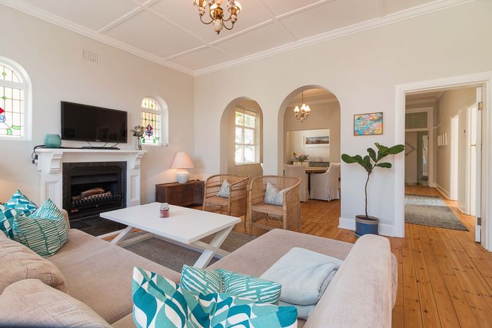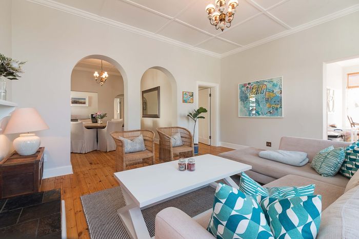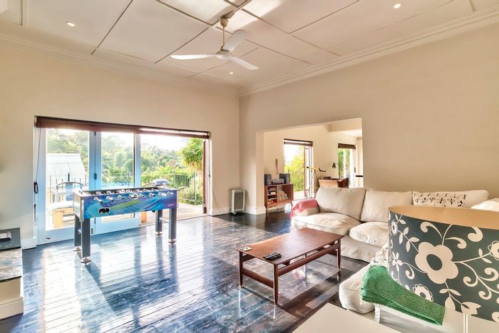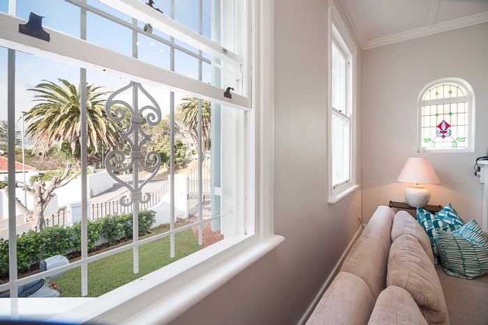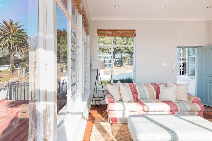 Elevated Tamboerskloof home with sweeping Table Mountain views, sun-filled gardens and thatched lapa for summer entertaining — sunroom, solid wood floors; walking distance to Kloof Street.