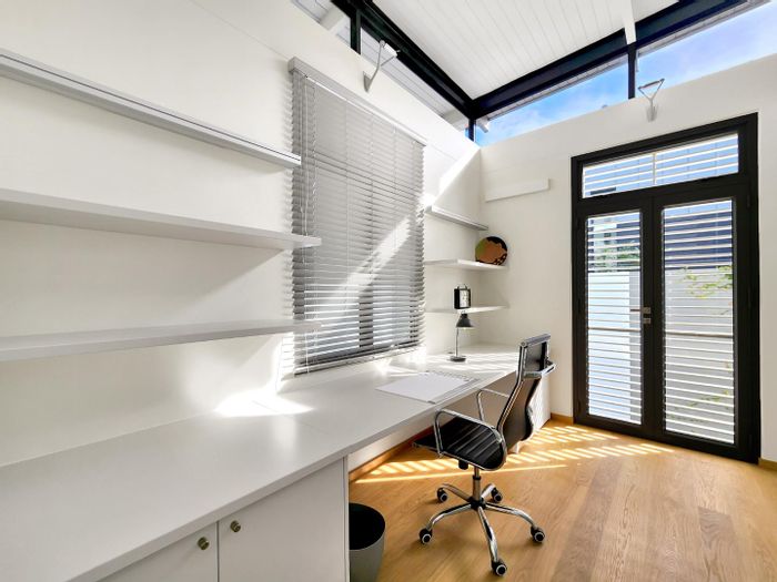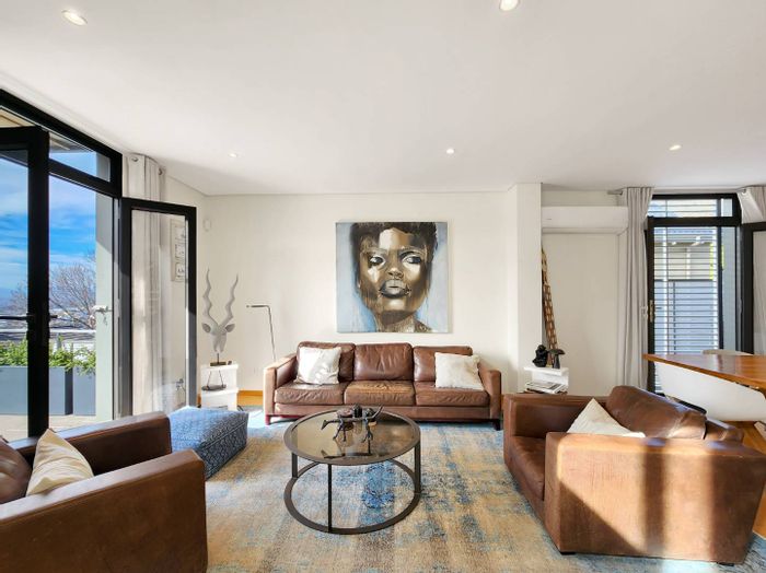 City pied-à-terre minutes from Bree Street and Signal Hill trails, with private landscaped garden and direct Table Mountain views; renovated two-bedroom cottage with double-volume living, one secure parking bay.