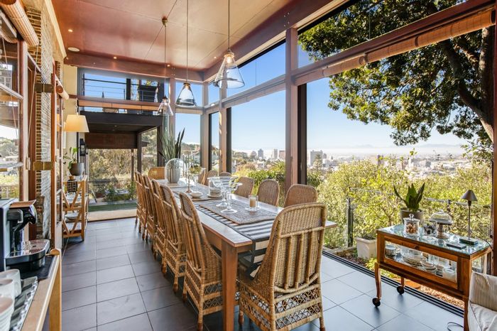 Live the sweet life on Signal Hill with sweeping Table Mountain and City Bowl views; Italian-style villa, conservatory dining and private north-facing apartment above a four-car garage.