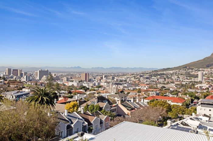 Elevated city living with daily Table Mountain and city views in Tamboerskloof, walking distance to Blue Café. Quality kitchen, pool, three bedrooms, two bathrooms and single garage.