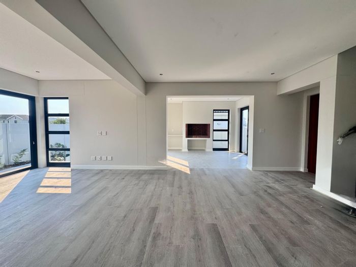 Relaxed estate living with walking/jogging access and quick shopping/medical convenience in Graanendal Estate; brand-new townhouse offers a spacious braai room and direct double-garage access.