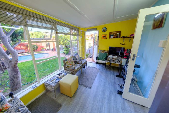 Relaxed family living in sought-after Fish Hoek, steps from the beach and schools, with a solar-heated pool and outdoor man cave — three-bedroom main plus separate flatlet.