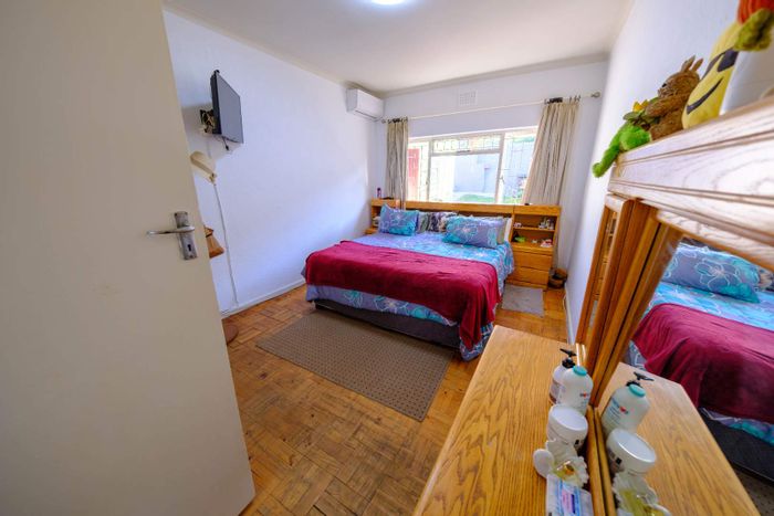 Peaceful Fish Hoek two-bedroom apartment with sunlit enclosed balcony, original parquet floors and roomy 18m² garage — great potential for modernisation in a family-friendly beachside neighbourhood.