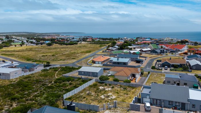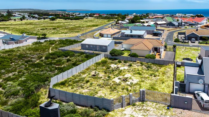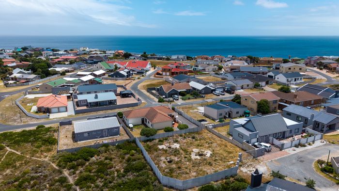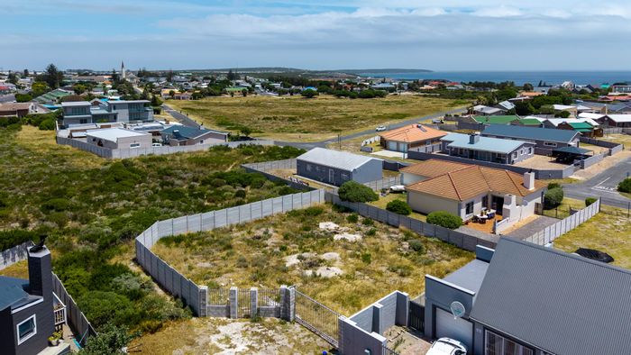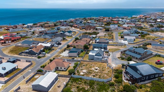 Embrace relaxed coastal living in Perlemoenbaai cul-de-sac, steps from whale-watching cliffs and coastal pathways. Level 523m² stand overlooks a green-belt with potential for ocean views.
