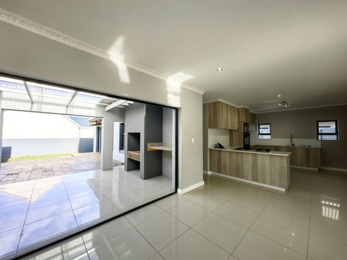 Family-focused living in Blue Mountain Village near Garden Route Mall and Victorian Beach — private outdoor oasis. Four beds, three baths, double garage, 15 minutes to airport.