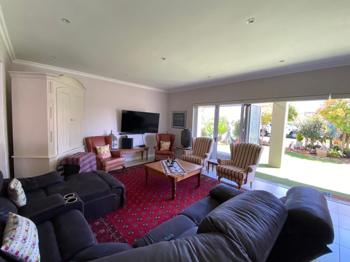 Wake to birdsong and Loerie visits in a quiet cul-de-sac near the Outeniqua Mountains, with flowing family living, three garages and tranquil mountain views.