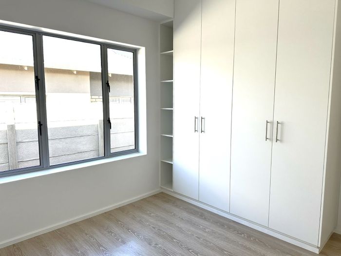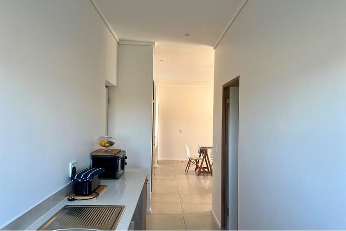 Effortless entertaining and relaxed first-floor living in a desirable, convenient location — modern open-plan kitchen with built-in braai and large sunlit window. Two bedrooms, two bathrooms, ample parking.