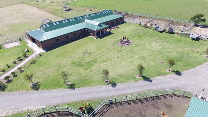 86 hectares farm with 3 bedrooms, 3 bathrooms, and 3 garages. Includes multiple rental units and facilities for livestock.